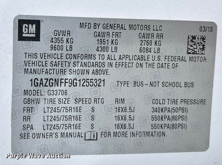 VIN: 1GAZGNFF9G1255321