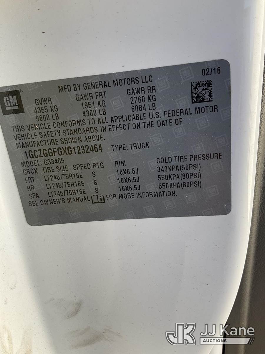 2016 Chevrolet Express G3500 Cargo Van, 6.0L V8 OHV 16V Gas, RWD, FFV, Auto, A/C, (55,160 miles) (Duke Unit) (Runs & Moves) This is a Titled Item NOTE: This unit is being sold AS IS/WHERE IS via Timed Auction and is located in Ocala, FL. Inspection & preview days for this unit are by appointment only; please contact us at contact@jjkane.com or 84-Go-JJKane for more details. For more information & removal arrangements please contact Mike Lessard @ (352) 629-6677. (Buyer is responsible for removal. Assistance by consignor or JJ Kane Auctions is not assured.)