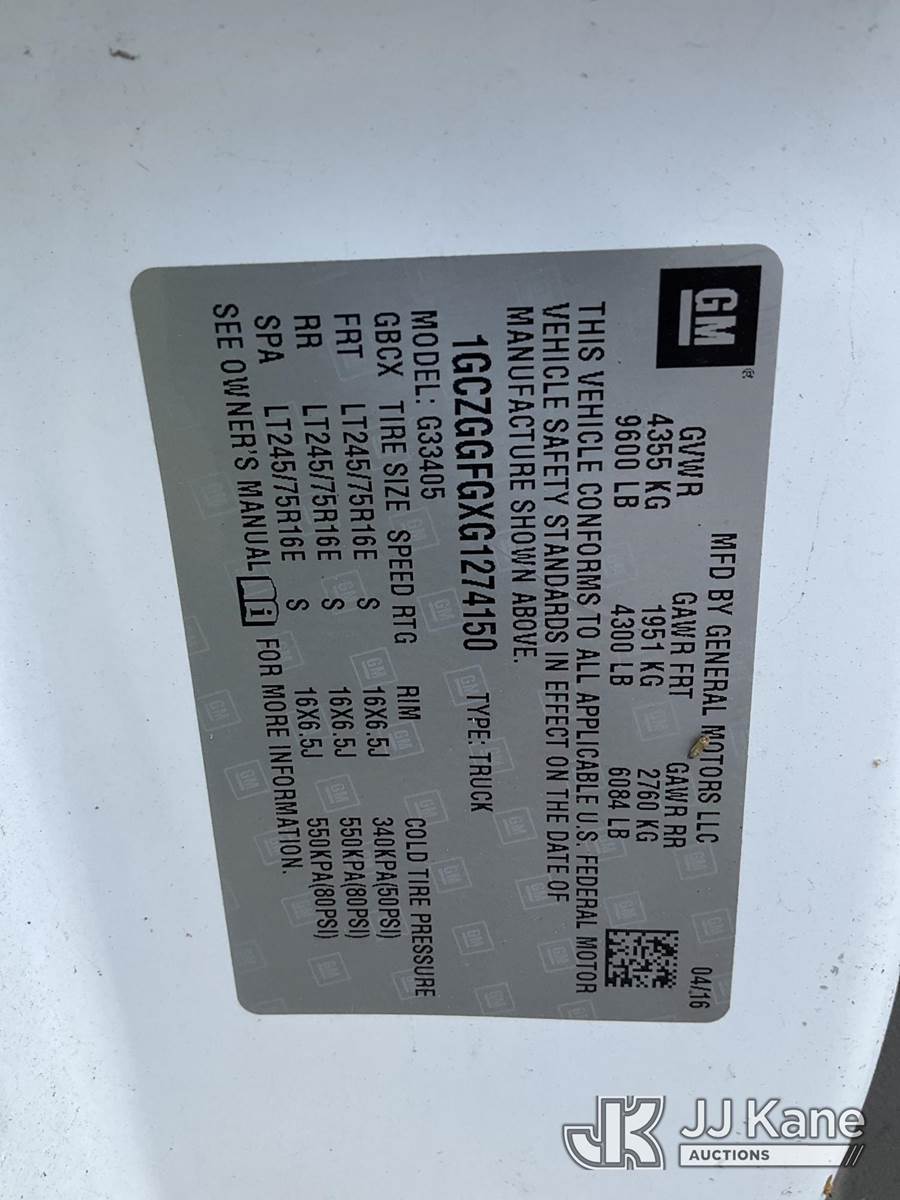 2016 Chevrolet Express G3500 Cargo Van, 6.0L V8 OHV 16V FFV gas, RWD, Auto, A/C, (79,279 miles) (Duke Unit) (Runs & Moves) (Jump To Start) This is a Titled Item NOTE: This unit is being sold AS IS/WHERE IS via Timed Auction and is located in Ocala, FL. Inspection & preview days for this unit are by appointment only; please contact us at contact@jjkane.com or 84-Go-JJKane for more details. For more information & removal arrangements please contact Mike Lessard @ (352) 629-6677. (Buyer is responsible for removal. Assistance by consignor or JJ Kane Auctions is not assured.)