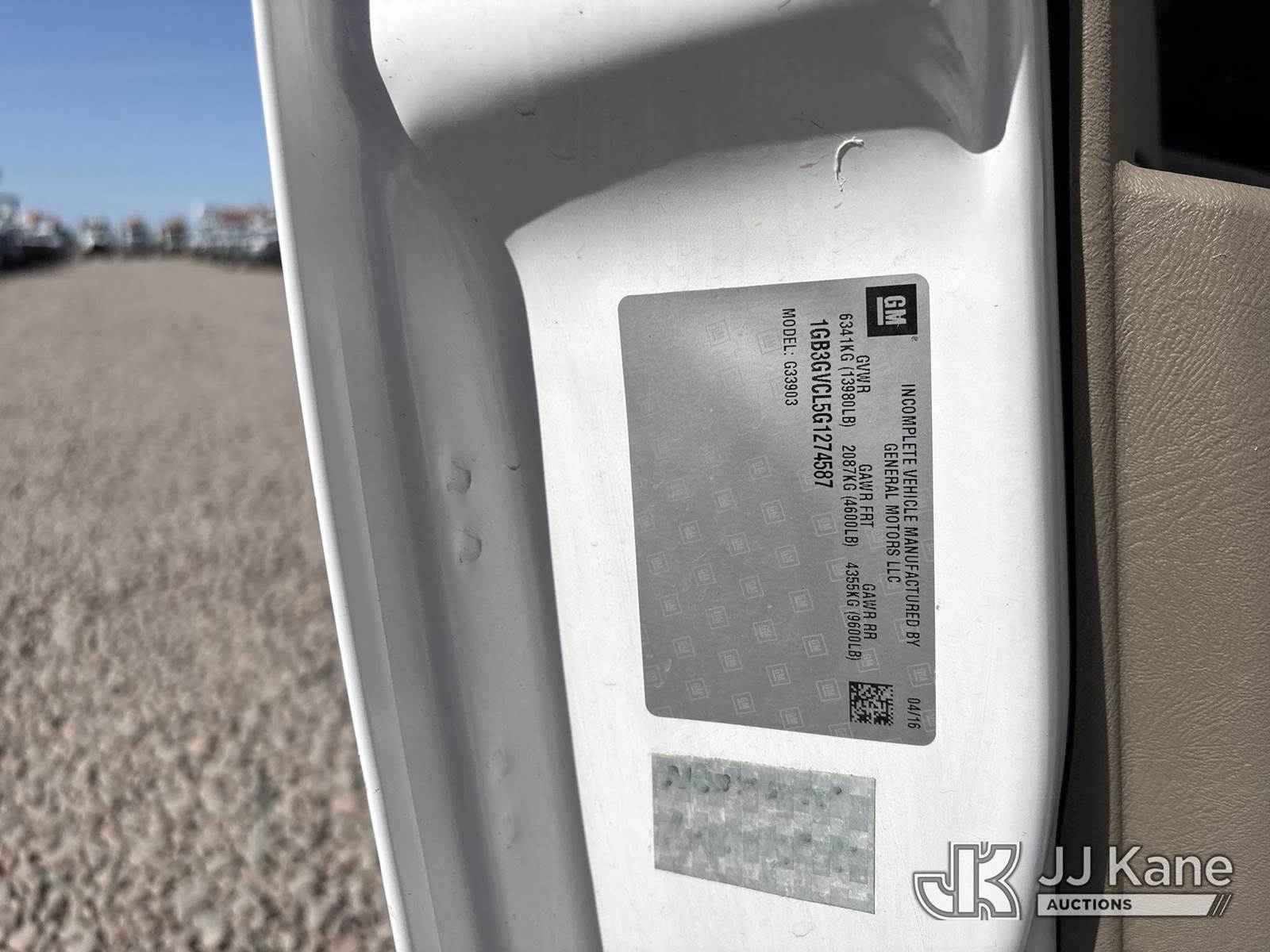 2016 Chevrolet G4500 Van Body Truck, s/n 1GB3GVCL5G1274587, Duramax 6.6L diesel, Auto, A/C, (37,624 miles) (Runs & Moves, Did Not Pass Smog, Service Battery Light On, Needs Jump To Start) (Bidding Restricted to Licensed Vehicle Dealers Only), May be subject to ARB Regulations This is a Titled Item NOTE: This unit is being sold AS IS/WHERE IS via Timed Auction and is located in Dixon, CA. Inspection & preview days for this unit are the 2 business days prior to the first day of items closing for this auction, item is located at 8668 Sparling Ln Dixon, CA 95620 and hours of operations are 8a-4p. For pre-sale questions, please contact JJ Kane Staff at (707) 678-8060 (dixon@jjkane.com). Dealer License Number 45696. (Buyer is responsible for removal. Assistance by consignor or JJ Kane Auctions is not assured.)