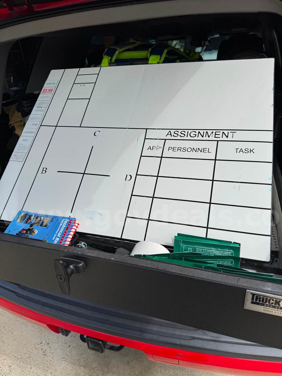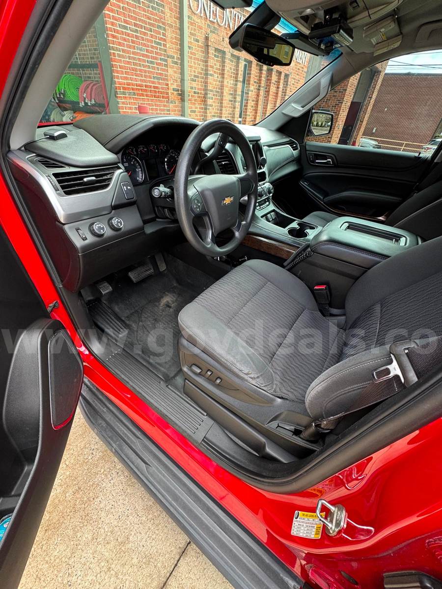 2016 Chevrolet Tahoe SPORT UTILITY 4-DR, 5.3L V8 OHV 16V. 4x4. Overall very good condition Special Service Vehicle with the following options: power windows, doors and keyless entry. Automatic climate control, aftermarket stereo with apple car play, dual cloth power seats, tires are in excellent condition, paint in very good condition with limited superficial scratches, never wrecked, no rust. New transmission installed in 2025, NOTE: number 6 cylinder has an undiagnosed misfire but does not affect daily drivability. All new plugs, wires, and fuel injectors in past two years. No check engine light, idles normally, drives normally. Vehicle was a fire chief staff vehicle and includes the following: Whelen light package, controller with rear traffic signal option, and siren (will be removed if not bought by government agency) Two VHF Motorola radios (will be removed if not bought by government agency) Rear command box with SCBA bracket and command board Sold AS IS, No guarantees, No Warranty offered