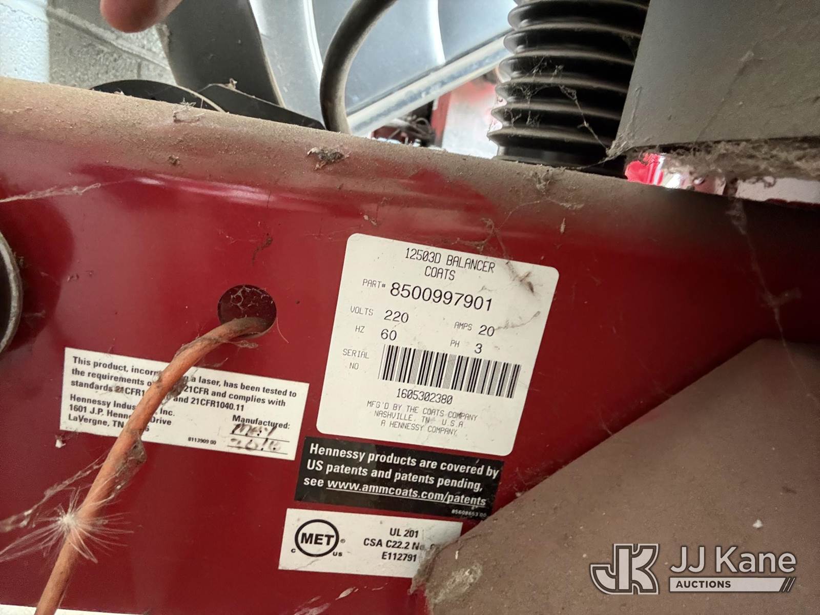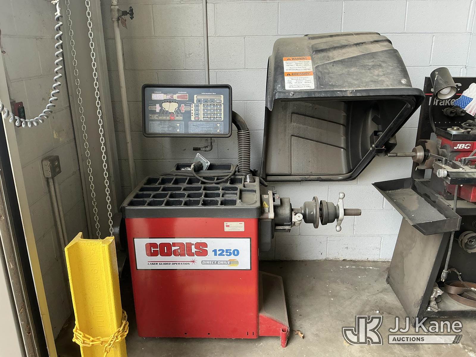 2016 Coats 1250 Series Wheel Balancer s/n 1605302380, Coop Unit (Runs & Operates) NOTE: This unit is being sold AS IS/WHERE IS via Timed Auction and is located in Jefferson, GA. For more information & removal arrangements please contact JT Thomas @ 762-291-7932. Removal by appointment only made at least 24 hours in advance, Buyer/Hauler must present copy of paid invoice upon arrival. Purchaser acknowledges ALL lots must be removed within 7 business days of Auction, or a storage fee may be incurred. For Removal and Pick Up information, please reference the release form sent out after purchase. (Buyer is responsible for removal. Assistance by consignor or JJ Kane Auctions is not assured.)