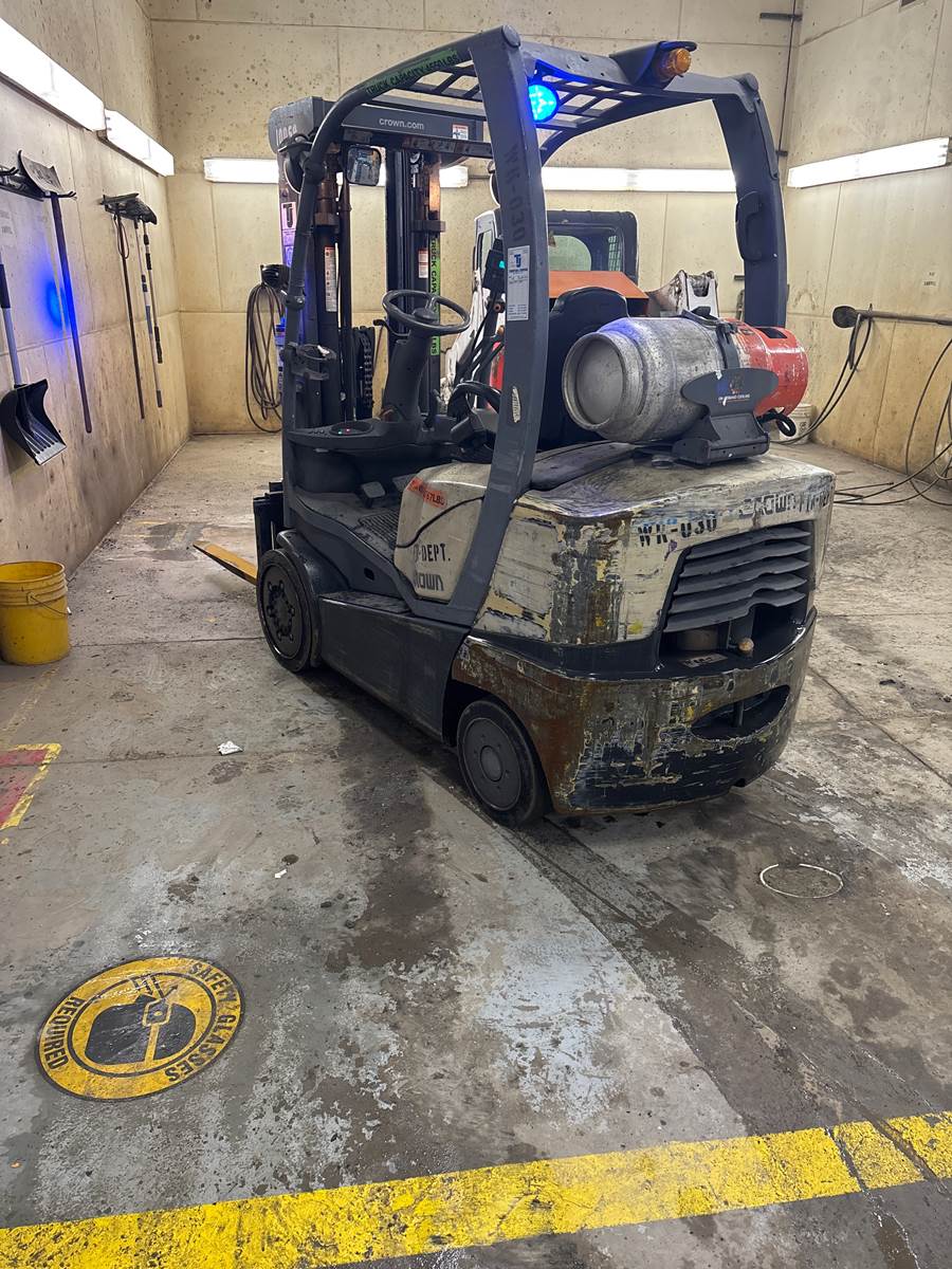 2016 Crown C5-1000-50, serial #9A229355, 84/188" three stage mast, sideshifter, 5000lb capacity, cushion tires, propane fuel, 42" forks, 14,882 hours, runs & operates. SDC