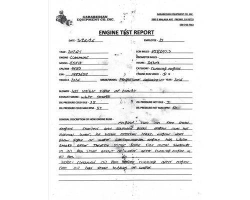 Cummins ISX, 475 HP, S/N 79125193, CPL-8519, CM870, Water Contamination In Oil.