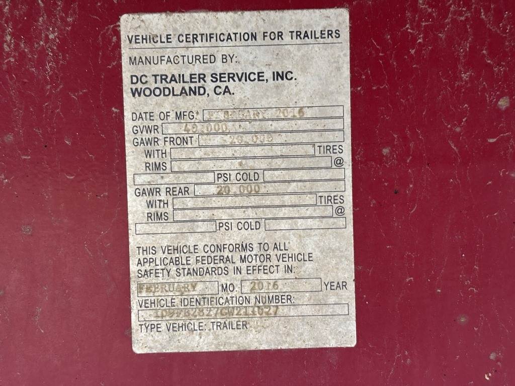 Location Arbuckle CA ***End-User Consignment*** VIN: 1D9FB2827GW211027 Pintle hitch, air brakes, steerable front axle, storage compartment w/tie down straps, 40,000lb GVWR, *This item is located in Arbuckle, California and can be viewed by appointment only. To schedule a preview or to ask questions about this item call 888-230-8840 *