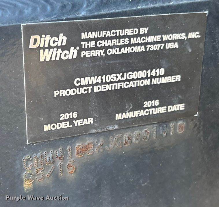 2016 Ditch Witch 410SX trencher, Hours: 1,275 on meter, Serial: CMW410SXPG0001484, Unit #: 68323615, Engine, Cylinders: 4, Fuel type: Gas,...