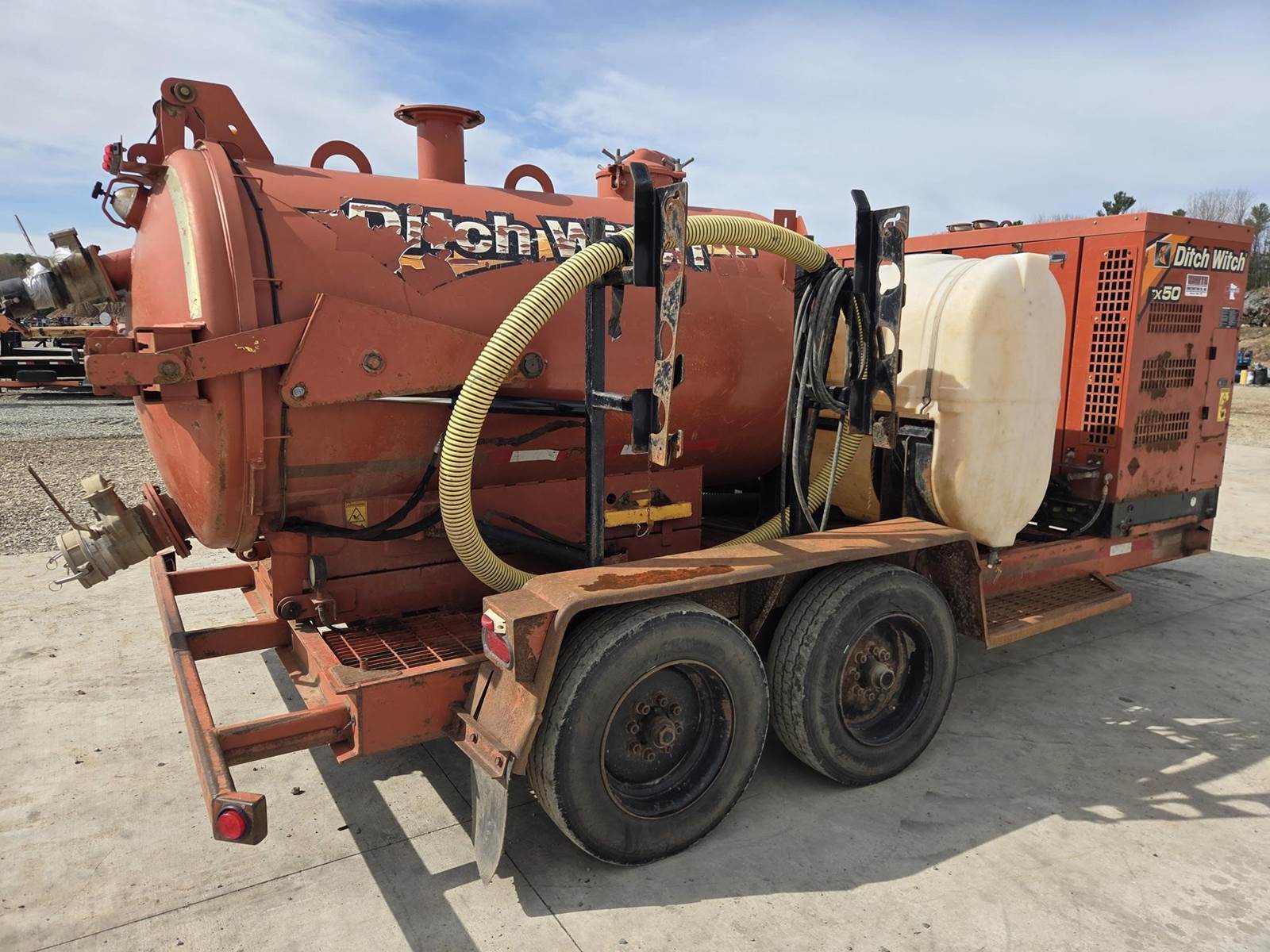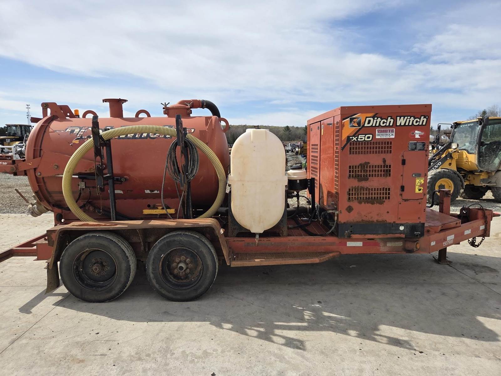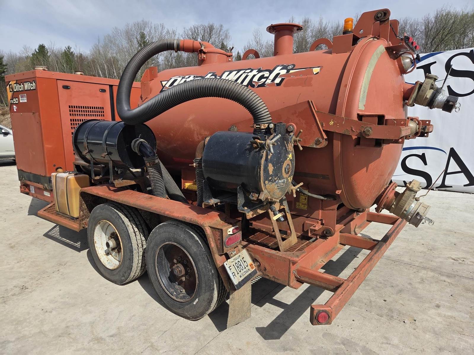 Deutz D2.9L4 Diesel Engine, Approx. 1000CFM Air Flow, Approx. 15'x4" Hose, Approx. 600 Gallon Spoil Tank, Hydraulic Tank Tilt, Hydraulic Gate, 200 Gallon Water Tank, Trailer Model: T18S, 18000LB GVWR, Spring Ride Suspension, Pintle Hitch, 215/75R17.5 Tires