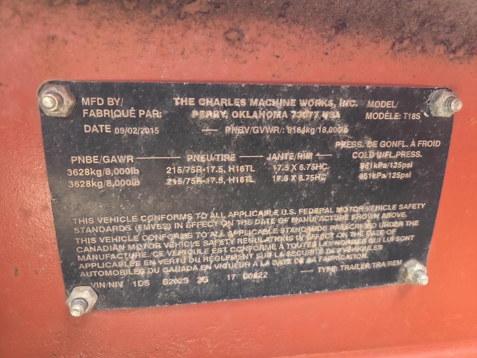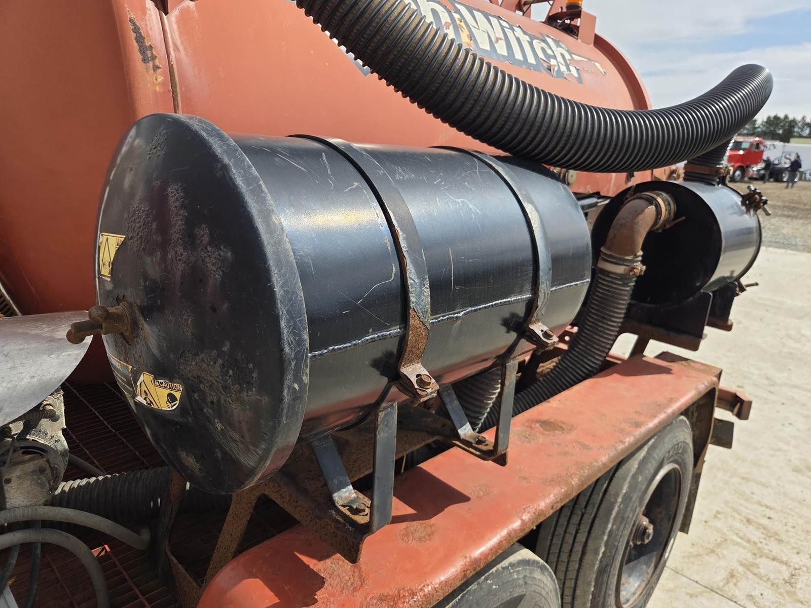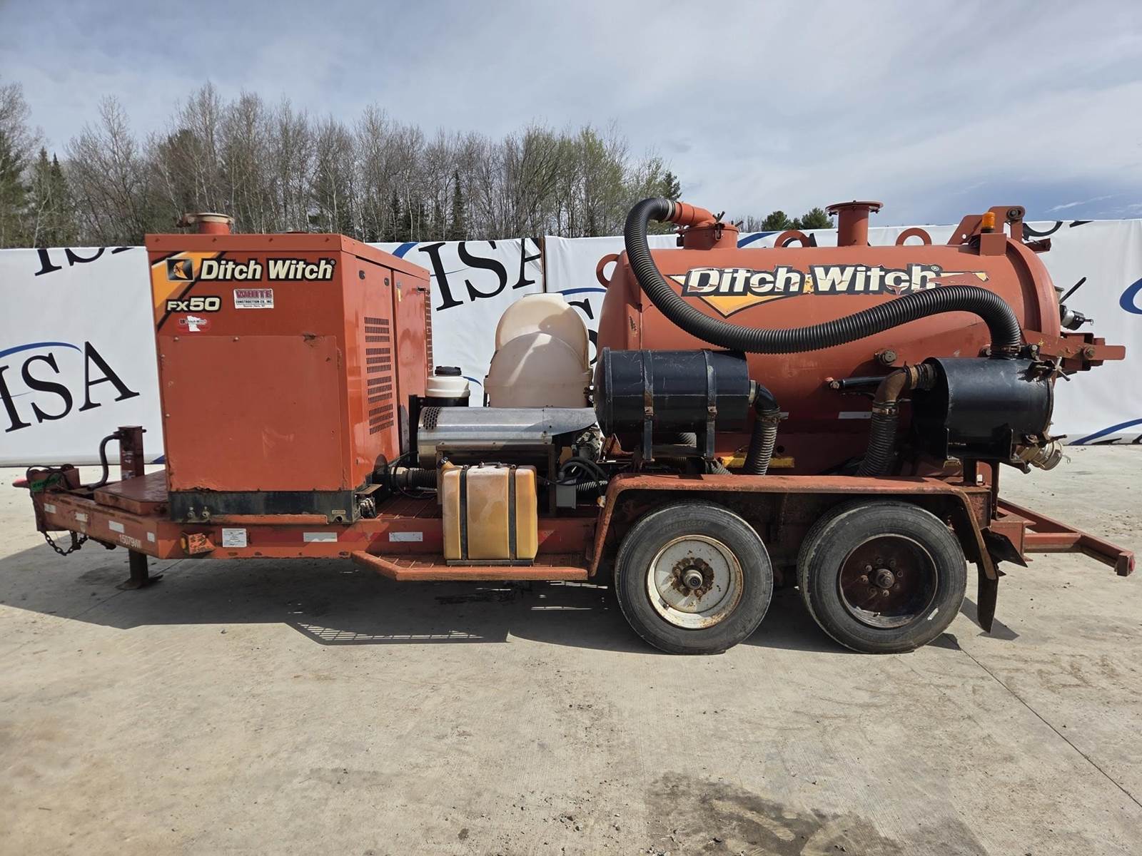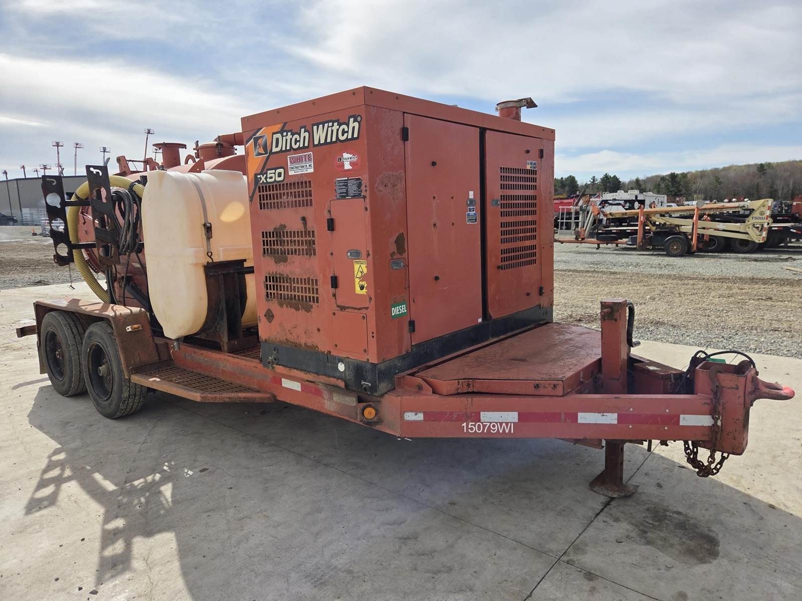 Deutz D2.9L4 Diesel Engine, Approx. 1000CFM Air Flow, Approx. 15'x4" Hose, Approx. 600 Gallon Spoil Tank, Hydraulic Tank Tilt, Hydraulic Gate, 200 Gallon Water Tank, Trailer Model: T18S, 18000LB GVWR, Spring Ride Suspension, Pintle Hitch, 215/75R17.5 Tires