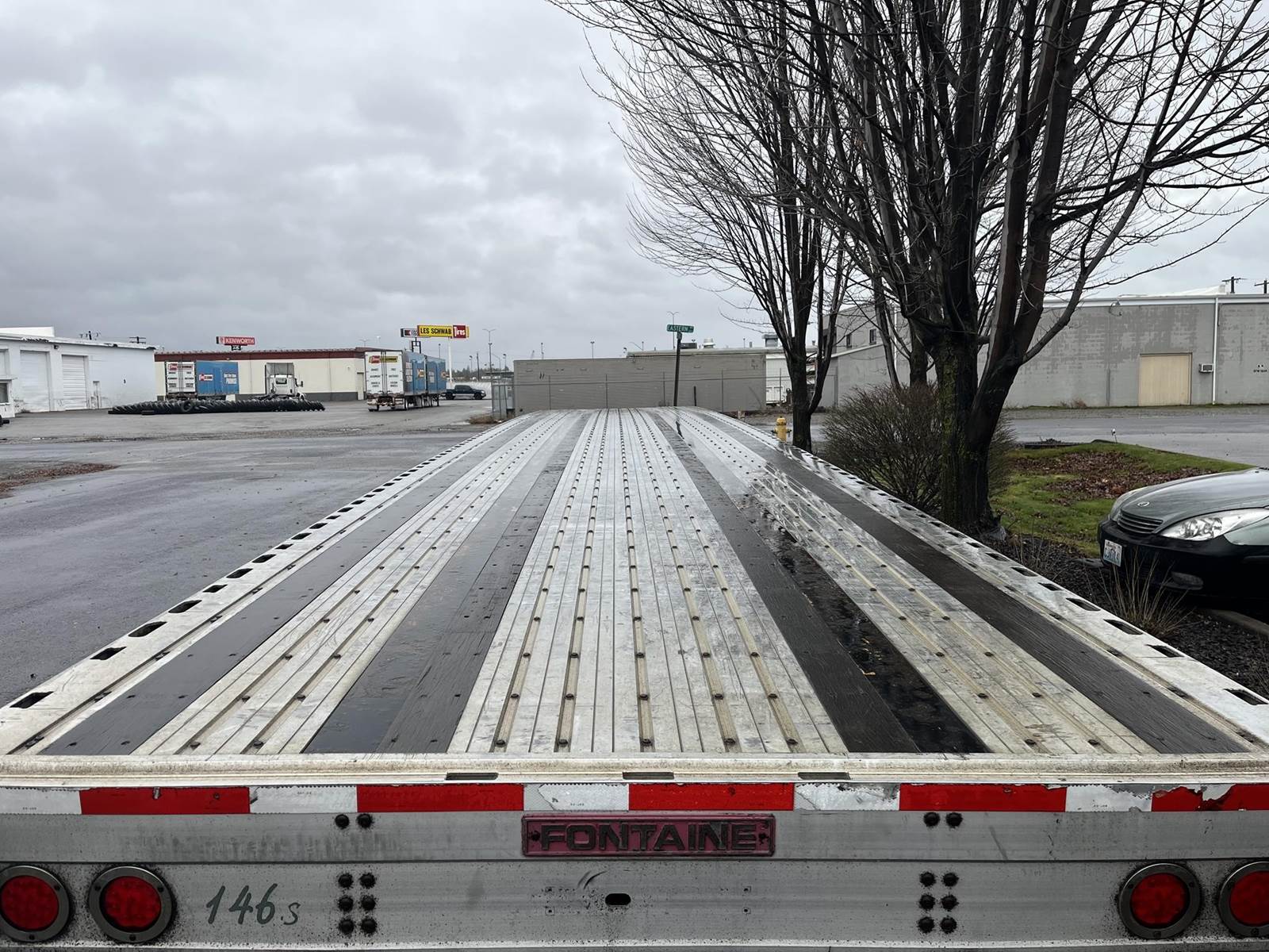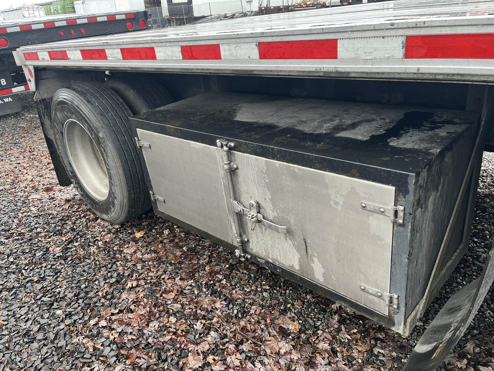 Nice older trailer, enclosed rub rail with stake pockets, 2 tool boxes, 10 road side sliding winches, recessed chain anchors, wood nailers...