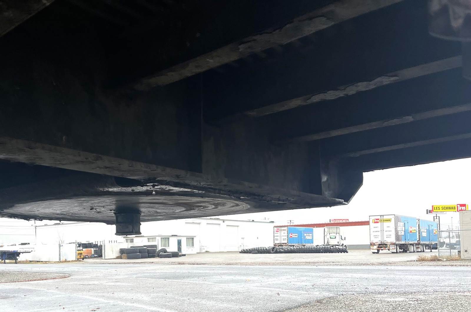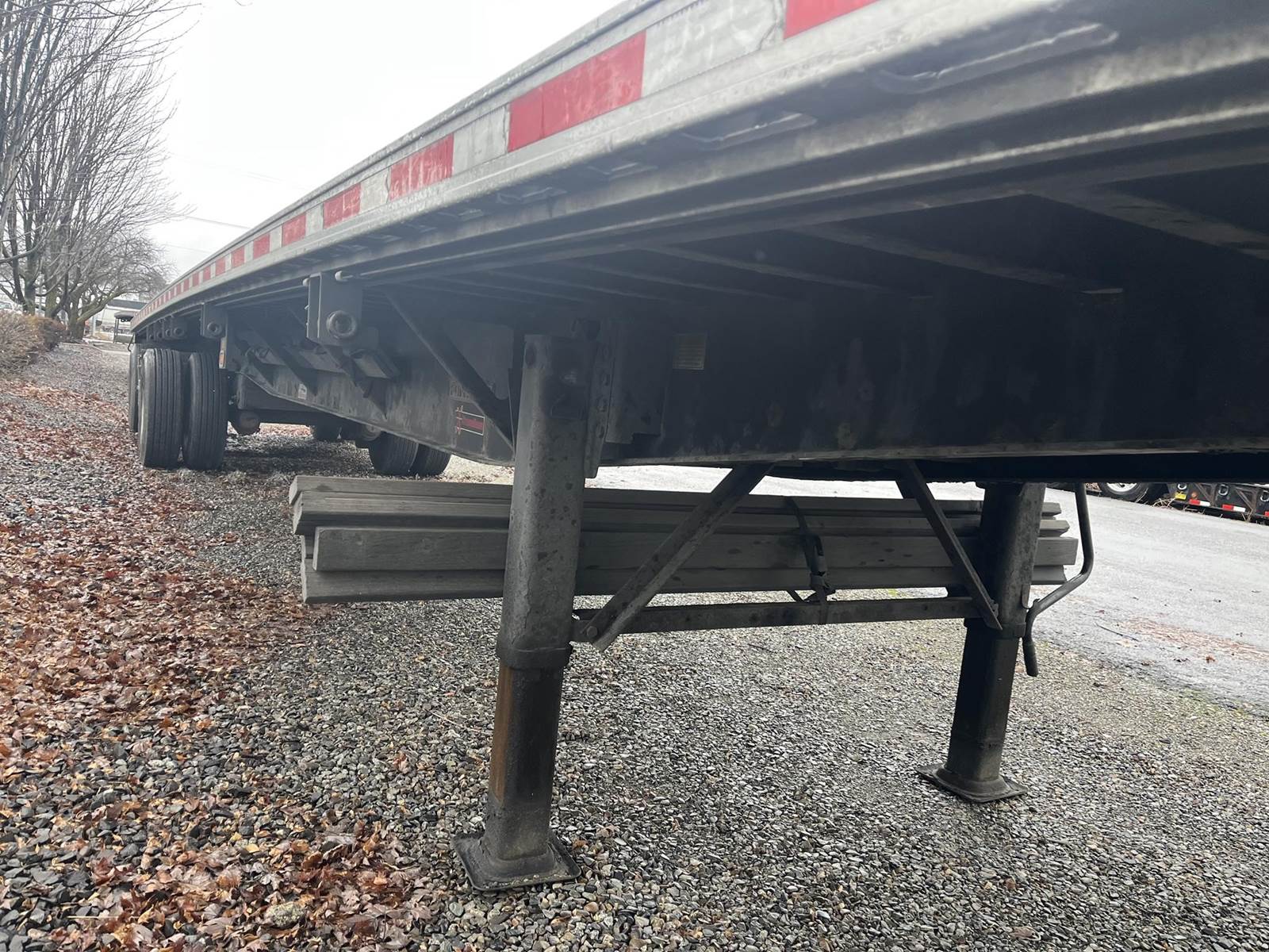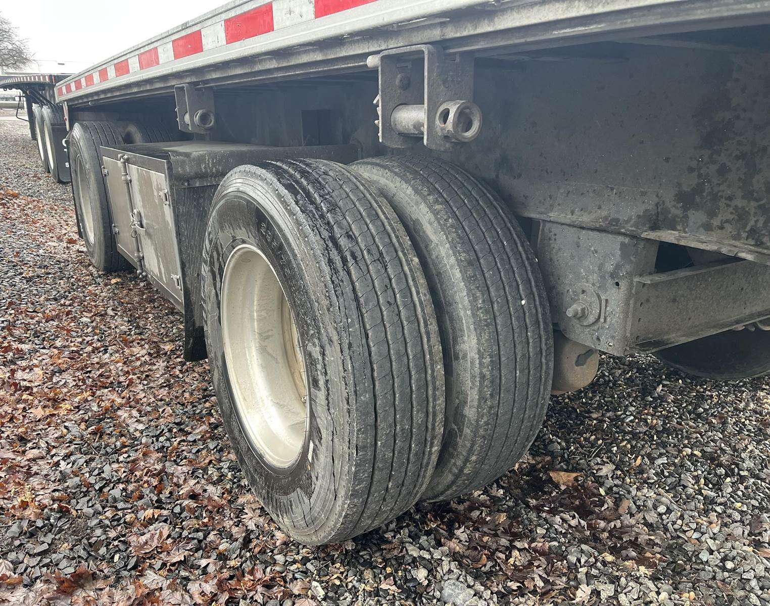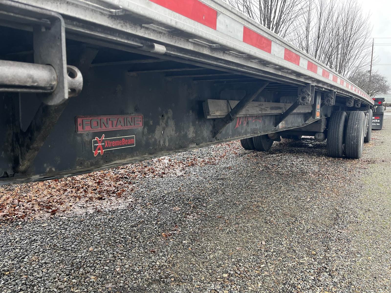 48' x 102" flatbed, spring ride slider, LP22.5 on steel HP, fixed winches, fresh sandblast paint, wood deck, 36" king pin
