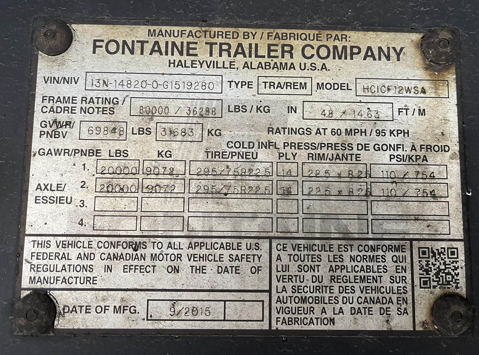 48" X 102" fix spread axle with front axle dump valve, (2) 24x24x60 tool boxes, chain hangers, double pipe spool rub rail, 17 sliding...