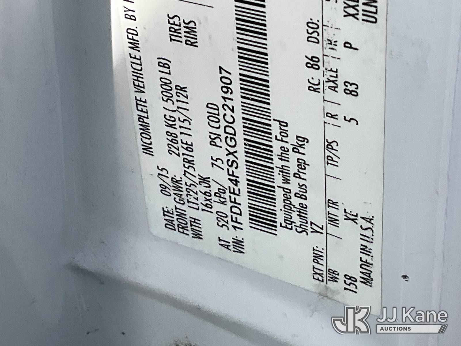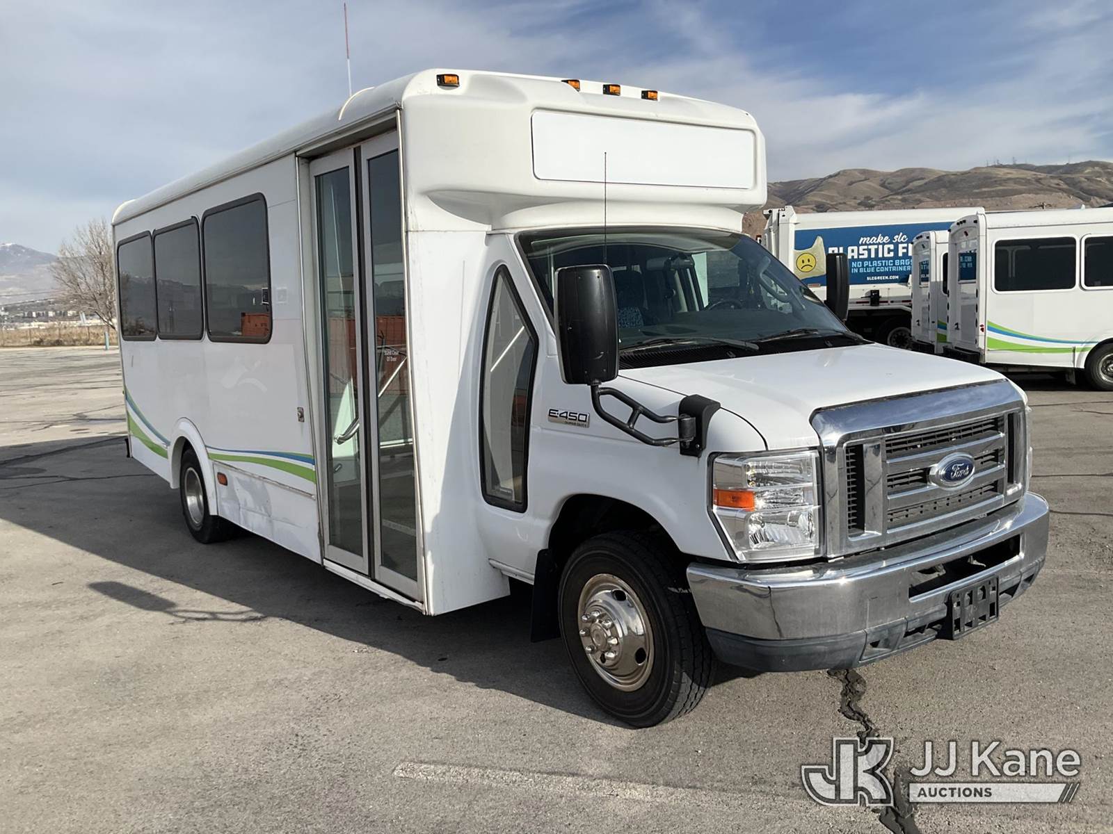 2016 Ford E450 Glaval Shuttle Bus, 10-cyl, Auto, CNG Only, A/C, (200,807 miles) (Runs & Moves) (Check Engine Light On) This is a Titled Item NOTE: This unit is being sold AS IS/WHERE IS via Timed Auction and is located in Salt Lake City, UT. Inspection & preview days for this unit are the 2 business days prior to the first day of items closing for this auction, item is located at 2353 N Redwood Rd Salt Lake City, UT 84116 and hours of operations are 8a-4p. Titles executed exactly as bidder registered. Ensure your name and/or business name and address in JJ Kane and/or ProxiBid is correct before bidding. For pre-sale questions, please contact Office Staff @ (801) 519-0123. (Buyer is responsible for removal. Assistance by consignor or JJ Kane Auctions is not assured.)
