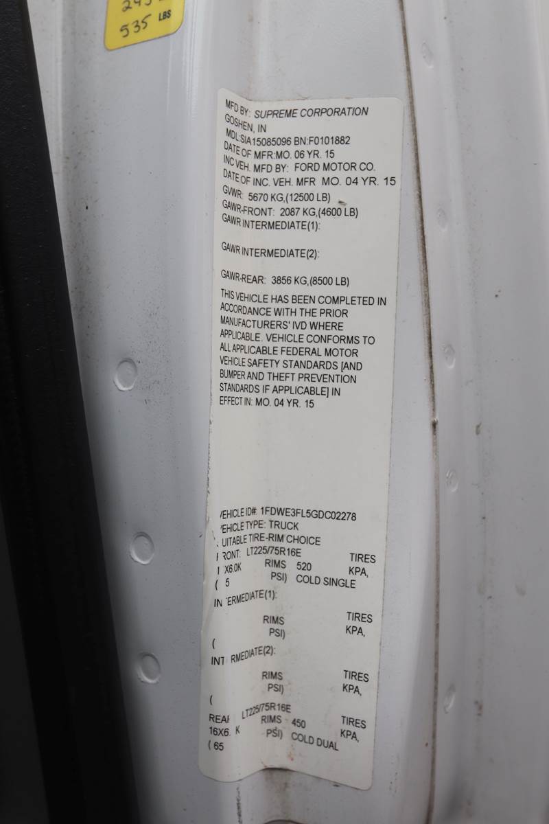 2016 Ford E350 Super Duty box truck, VIN #1FDWE3FL5GDC02278, mileage 86,968