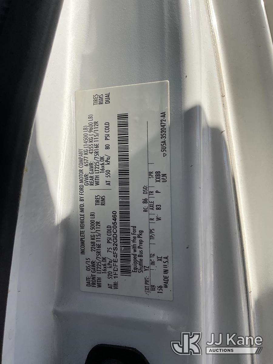 2016 Ford Econoline E450 Passenger Bus, s/n 1FDFE4FS2GDC05460, 10-cyl, Auto, LPG, A/C, with 20 Passenger Seating, Wheelchair Lift, (171,217 miles) (Runs & Moves) (Bidding Restricted to Licensed Vehicle Dealers Only), This is a Titled Item NOTE: This unit is being sold AS IS/WHERE IS via Timed Auction and is located in Jurupa Valley, CA. Inspection & preview days for this unit are the 2 business days prior to the first day of items closing for this auction, item is located at 4510 Muth Way Jurupa Valley, CA 92509 and hours of operations are 8a-4p. For pre-sale questions, please contact please contact Office Staff @ (310) 353-7140. Dealer License Number 45696. (Buyer is responsible for removal. Assistance by consignor or JJ Kane Auctioneers is not assured.)