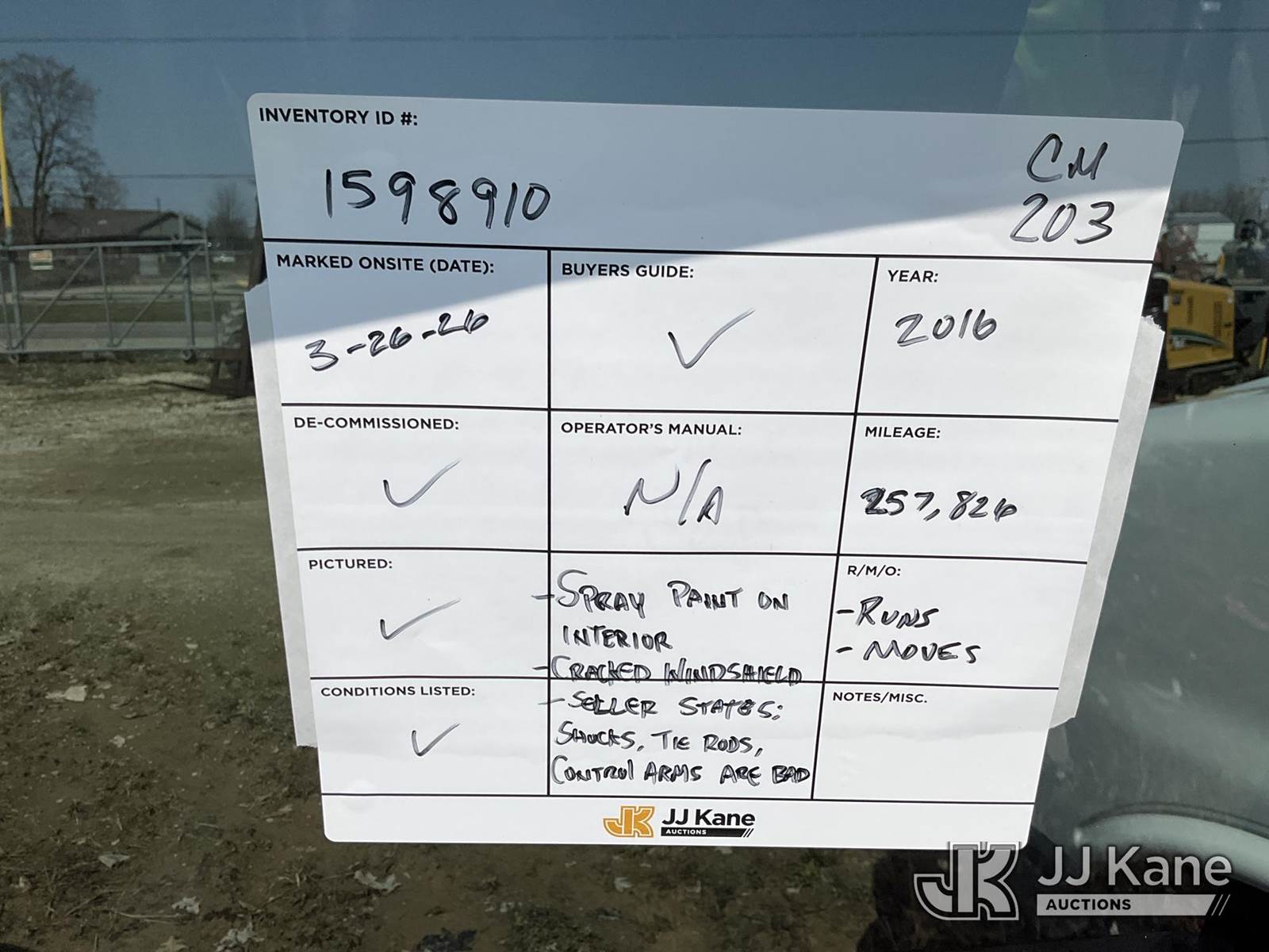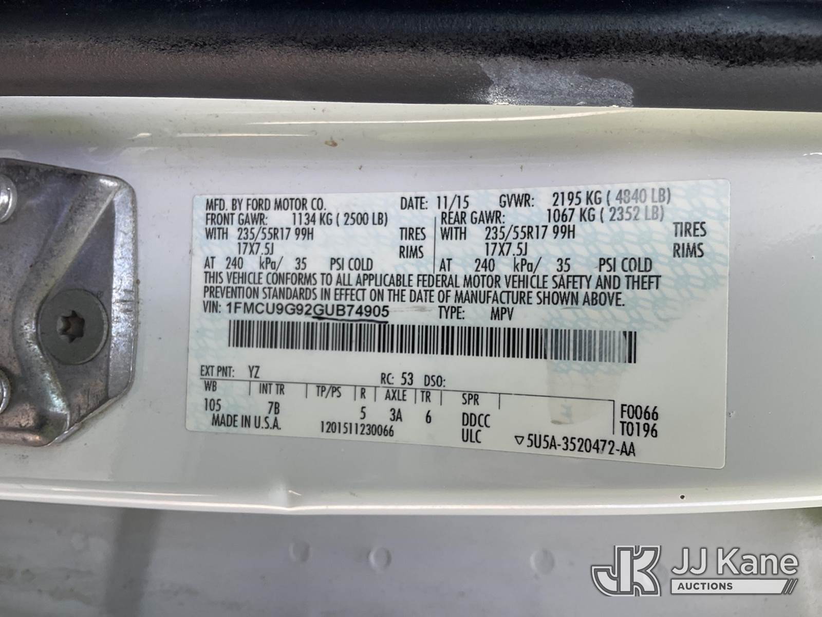 2016 Ford Escape SE 4WD Sport Utility Vehicle, 4-cyl gas, Auto, A/C, (257,826 miles) (Runs & Moves)( Spray Paint On Interior, Cracked Windshield, Missing Rear Wiper) (Seller States: Shocks/Tie Rods/Control Arms Are Bad) This is a Titled Item NOTE: This unit is being sold AS IS/WHERE IS via Timed Auction and is located in Charlotte, MI. Inspection & preview days for this unit are the 2 business days prior to the first day of items closing for this auction, item is located at 750 Island Hwy Charlotte, MI 48813 and hours of operations are 8a-4p. For pre-sale questions, please contact Corey Cook at (517) 983-0796 or corey.cook@jjkane.com (Buyer is responsible for removal. Assistance by consignor or JJ Kane Auctions is not assured.)