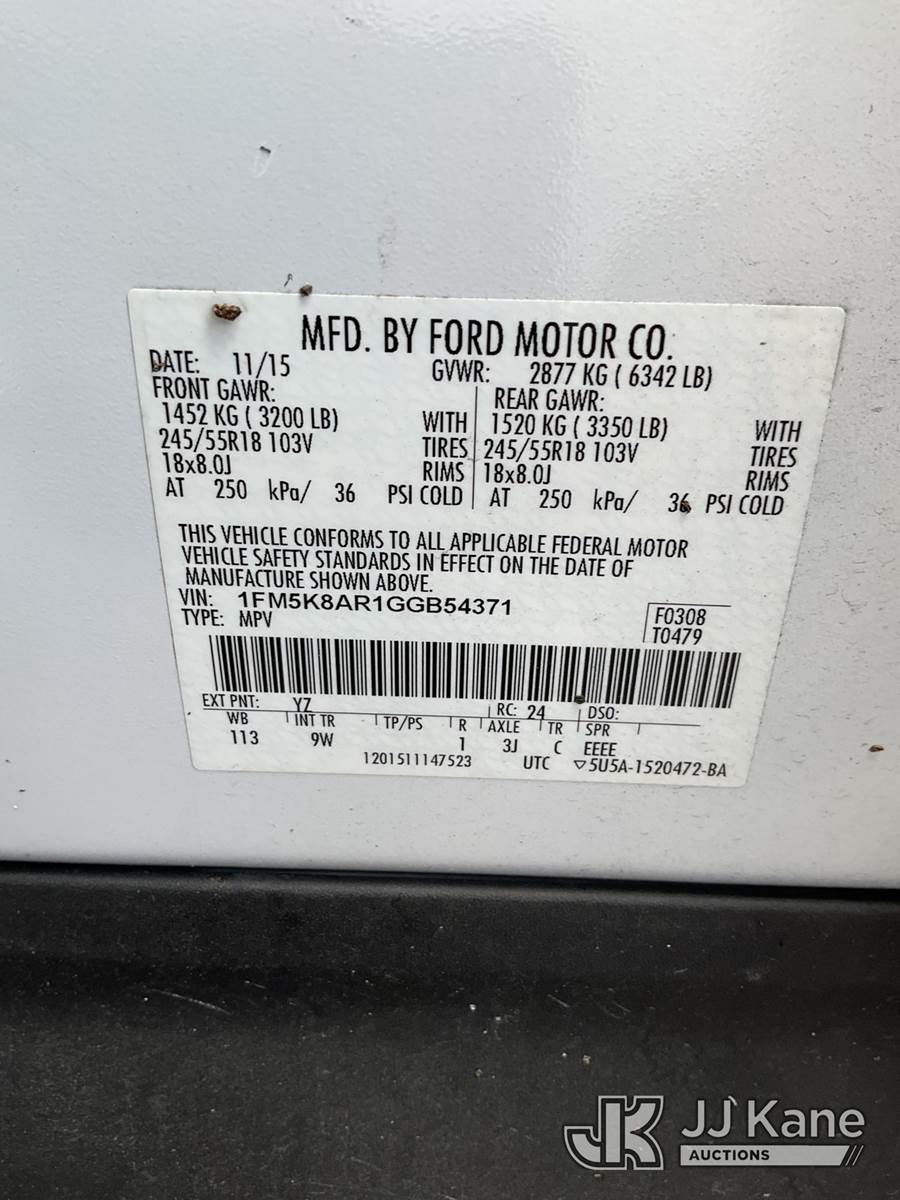 2016 Ford Explorer AWD Police Interceptor 4-Door Sport Utility Vehicle, 6-cyl gas, Auto, A/C, (128,758 miles) (Runs & Moves) (Jump To Start, Body/Paint Damage) (Branded Title - Police Vehicle) This is a Titled Item NOTE: This unit is being sold AS IS/WHERE IS via Timed Auction and is located in Ocala, FL. Inspection & preview days for this unit are by appointment only; please contact us at contact@jjkane.com or 84-Go-JJKane for more details. For more information & removal arrangements please contact Mike Lessard @ (352) 629-6677. (Buyer is responsible for removal. Assistance by consignor or JJ Kane Auctioneers is not assured.)