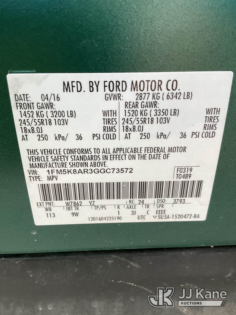 2016 Ford Explorer AWD Police Interceptor 4-Door Sport Utility Vehicle, 3.7L V6 DOHC 24V gas, 6-Speed Automatic, A/C, (102,096 miles) Alachua County Sheriff's Office Unit (Runs & Moves) (Body/Paint Damage) This is a Titled Item NOTE: This unit is being sold AS IS/WHERE IS via Timed Auction and is located in Ocala, FL. Inspection & preview days for this unit are by appointment only; please contact us at contact@jjkane.com or 84-Go-JJKane for more details. For more information & removal arrangements please contact Mike Lessard @ (352) 629-6677. (Buyer is responsible for removal. Assistance by consignor or JJ Kane Auctions is not assured.)