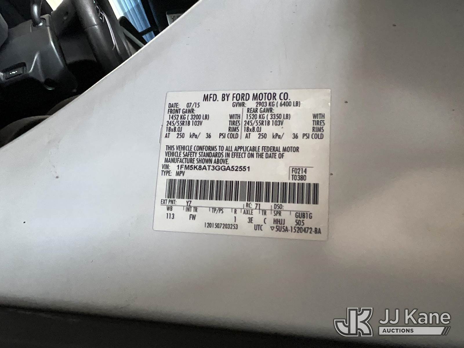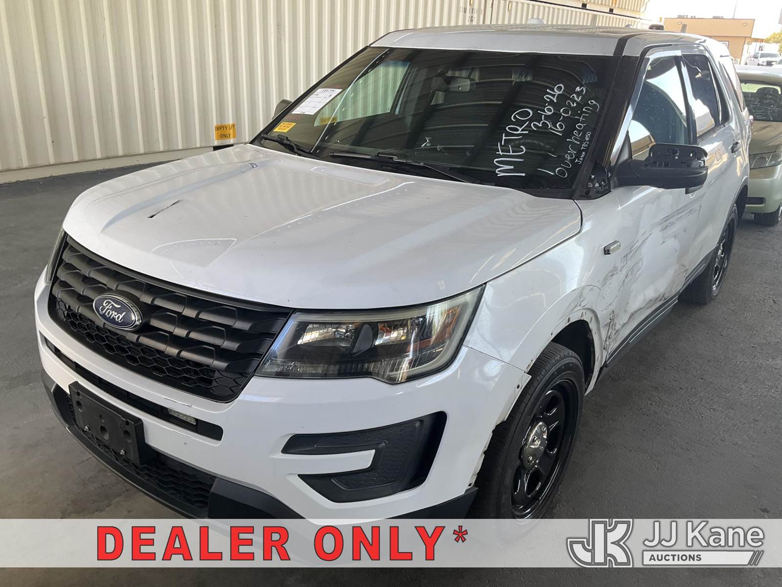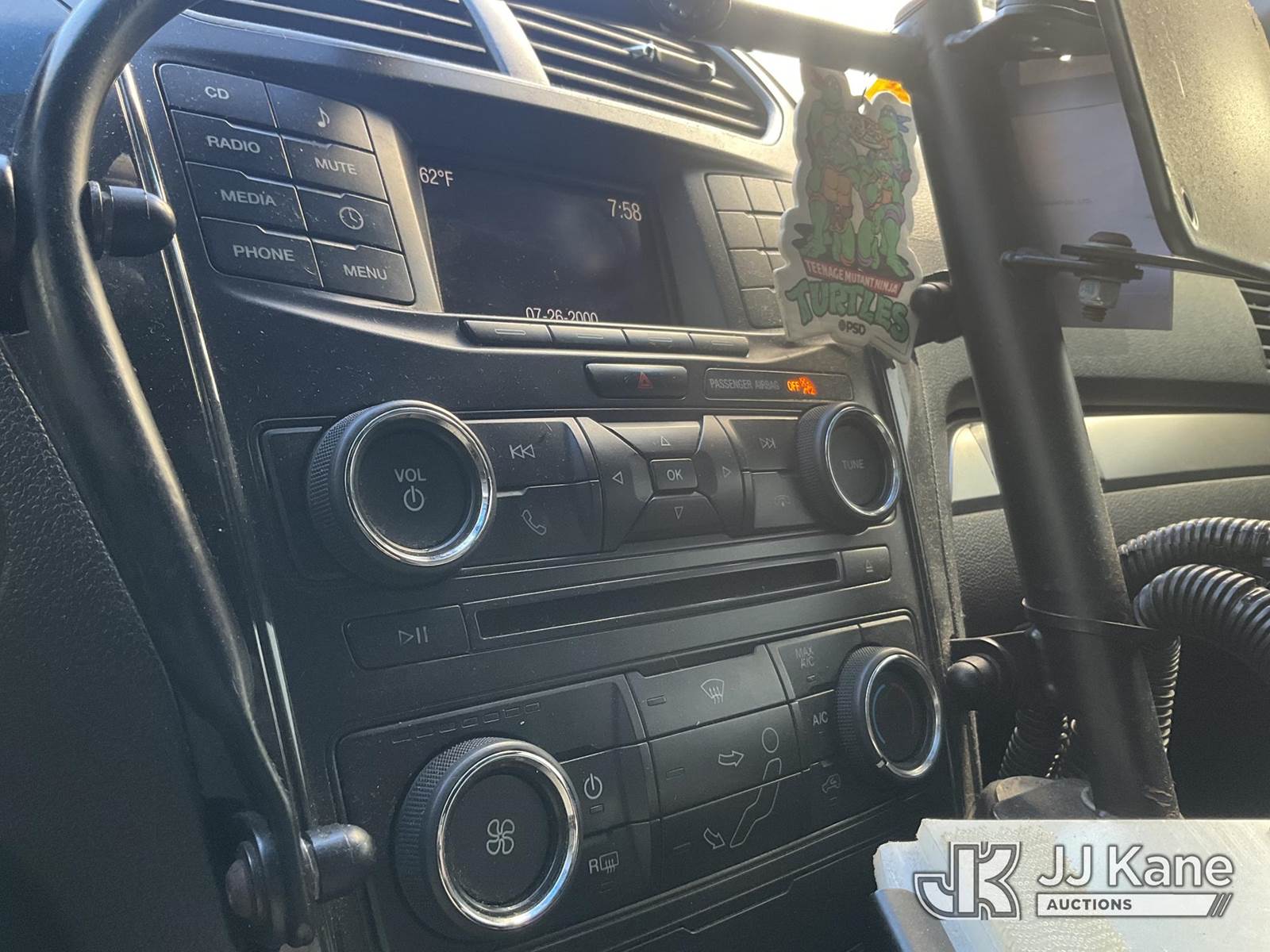 2016 Ford Explorer AWD Police Interceptor 4-Door Sport Utility Vehicle, s/n 1FM5K8AT3GGA52551, 6-cyl gas, 6-Speed Automatic, A/C, (121,145 miles) (Runs & Moves) (Body Damage, Damaged/Missing Side Mirrors, Hood Damage, Engine Rattle, Overheats, Interior Stripped Of Parts, Open Recall, Remedy Not Yet Available, Vehicle is subject to open NHTSA safety recalls related to IN SOME OF THE AFFECTED VEHICLES, IT MAY BE POSSIBLE THAT SOME OF THE EXTERIOR A-PILLAR APPLIQUE TRIM CLIP ATTACHMENTS ARE NOT PROPERLY ENGAGED DUE TO IMPROPER ASSEMBLY OR REPAIR. IF THIS OCCURS, THE A-PILLAR APPLIQUE TRIM, WHICH BORDERS THE RIGHT AND LEFT SIDE OF THE WINDSHIELD, MAY BE LOOSE, MISSING OR BECOME DETACHED WHILE DRIVING AND CAN CREATE A ROAD HAZARD FOR OTHER ROAD USERS, INCREASING THE RISK OF A CRASH and THE DRIVER AND FRONT PASSENGER DOOR B-PILLAR TRIM APPLIQUES MAY BECOME PARTIALLY OR FULLY DETACHED. YOU MAY VISUALLY NOTICE THE B-PILLAR TRIM APPLIQUES SEPARATING FROM THE TOP OF THE FRONT DOORS WHEN ENTERING EXITING THE VEHICLE AND OR HEAR WIND NOISE AND RATTLING NOISE AS YOU DRIVE. THIS MAY RESULT IN THE B-PILLAR TRIM APPLIQUES DETACHING WHILE DRIVING. A B-PILLAR TRIM APPLIQUE THAT DETACHES WHILE DRIVING CAN CREATE A ROAD HAZARD FOR OTHER VEHICLES, INCREASING THE RISK OF A CRASH, but a remedy for this recall does no t appear to be available. Dealer is not authorized to perform the recall repair. Periodically contact the manufacturer or check the VIN on the NHTSA website at www.safercar.gov to determine whether a remedy for the recall is available. As soon as a remedy is available, arrange to have the recall remedied with a dealer from that make of car to make such repair.) (Bidding Restricted to Licensed Vehicle Dealers Only), This is a Titled Item NOTE: This unit is being sold AS IS/WHERE IS via Timed Auction and is located in Jurupa Valley, CA. Inspection & preview days for this unit are the 2 business days prior to the first day of items closing for this auction, item is located at 4510 Muth Way Jurupa Valley, CA 92509 and hours of operations are 8a-4p. For pre-sale questions, please contact please contact Office Staff @ (310) 353-7140. Dealer License Number 45696. (Buyer is responsible for removal. Assistance by consignor or JJ Kane Auctions is not assured.)