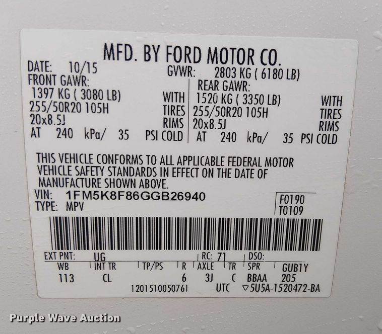 VIN: 1FM5K8F86GGB26940