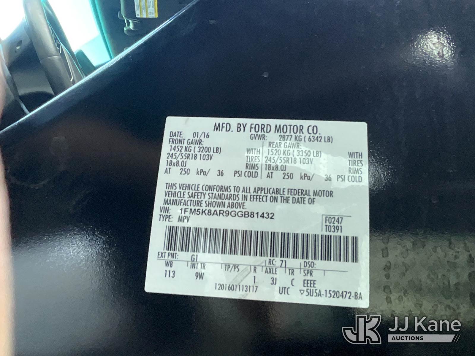 2016 Ford Explorer Police 4WD 4-Door Sport Utility Vehicle, s/n 1FM5K8AR9GGB81432, 3.7L V6 DOHC 24V Gas 6-Speed Automatic, (105,518 miles) (Runs & Moves) (Engine Light On, Needs Battery, Chipped Front Windshield, Interior Stripped Of Parts, Body Damage, Open Recall, Remedy Not Yet Available) (Bidding Restricted to Licensed Vehicle Dealers Only), This is a Titled Item NOTE: This unit is being sold AS IS/WHERE IS via Timed Auction and is located in Jurupa Valley, CA. Inspection & preview days for this unit are the 2 business days prior to the first day of items closing for this auction, item is located at 4510 Muth Way Jurupa Valley, CA 92509 and hours of operations are 8a-4p. For pre-sale questions, please contact please contact Office Staff @ (310) 353-7140. Dealer License Number 45696. (Buyer is responsible for removal. Assistance by consignor or JJ Kane Auctions is not assured.)