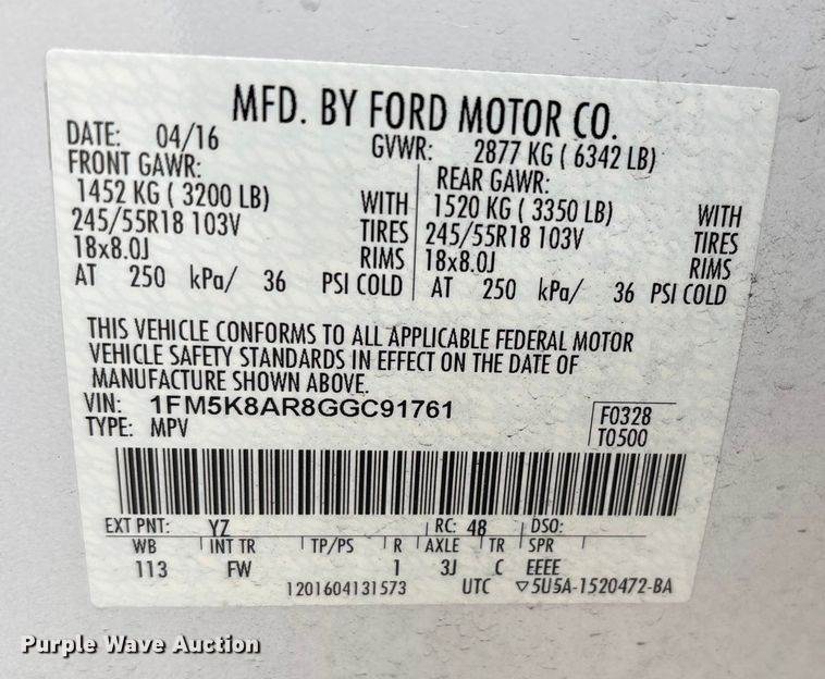 VIN: 1FM5K8AR8GGC91761