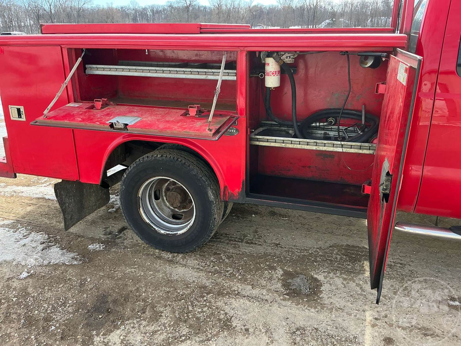 S/A MECHANICS TRUCK, FORD, 6.2L GAS, HP 385, AUTOMATIC, 2X4, SPRING SUSPENSION, 162" " WB, GVWR 14000, READING, 9' UTILITY BODY, HEADACHE RACK, CRUISE CONTROL, BULK FUEL TANK, STEEL DISC WHEELS, 245/75R17 TIRES, FRONT AXLE GAWR 4700 LBS, REAR AXLE GAWR 9750 LBS, HOUR METER READS: 10840, ODOMETER READS: 212395, ***CHECK ENGINE LIGHT IS ON, ENGINE RUNS ROUGH***