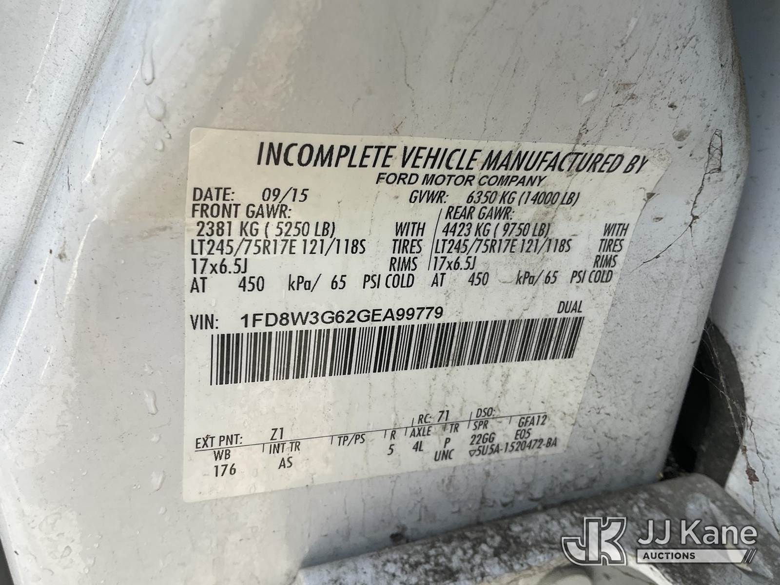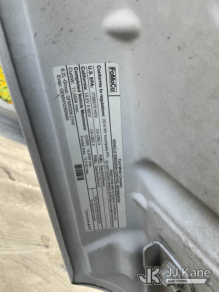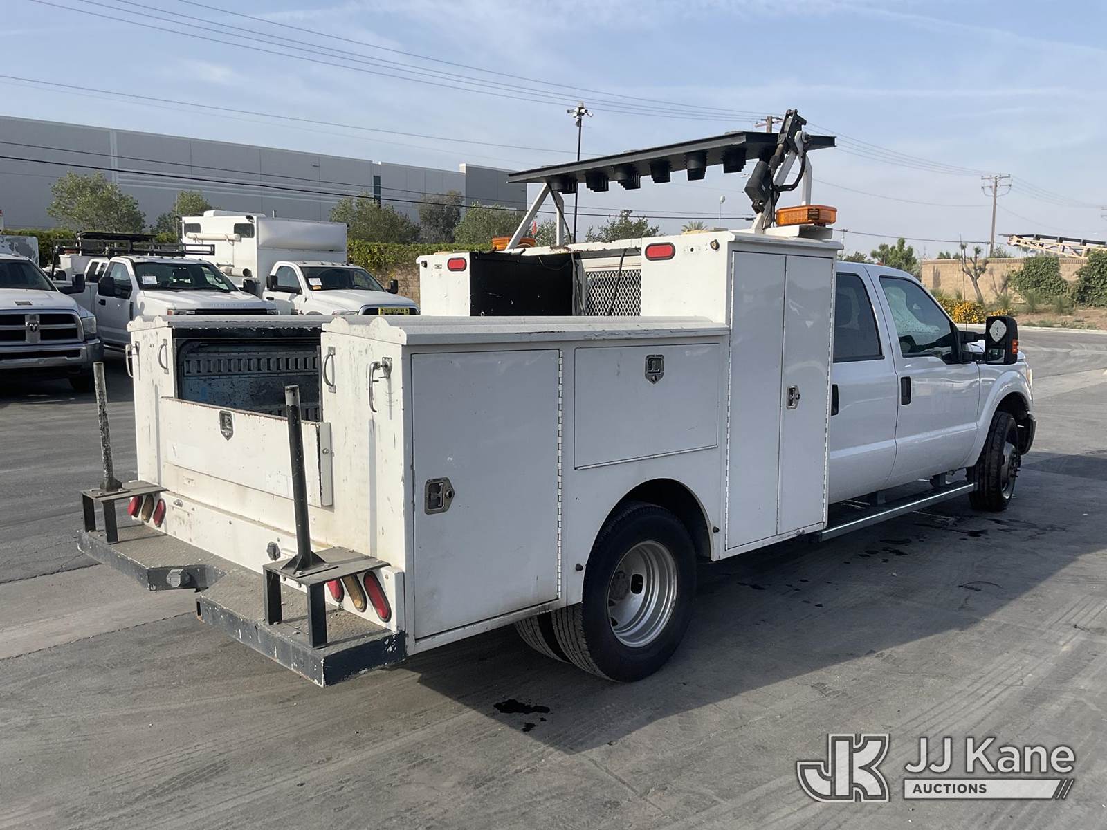 2016 Ford F-350 SD Crew-Cab Service Truck, s/n 1FD8W3G62GEA99779, 6.2L V8 OHV 16V RWD, GAS, 6-Speed Automatic, A/C, with Arrowboard, Tow Package, (73,854 miles) (Runs & Moves) This is a Titled Item NOTE: This unit is being sold AS IS/WHERE IS via Timed Auction and is located in Jurupa Valley, CA. Inspection & preview days for this unit are the 2 business days prior to the first day of items closing for this auction, item is located at 4510 Muth Way Jurupa Valley, CA 92509 and hours of operations are 8a-4p. For pre-sale questions, please contact please contact Office Staff @ (310) 353-7140. Dealer License Number 45696. (Buyer is responsible for removal. Assistance by consignor or JJ Kane Auctions is not assured.)