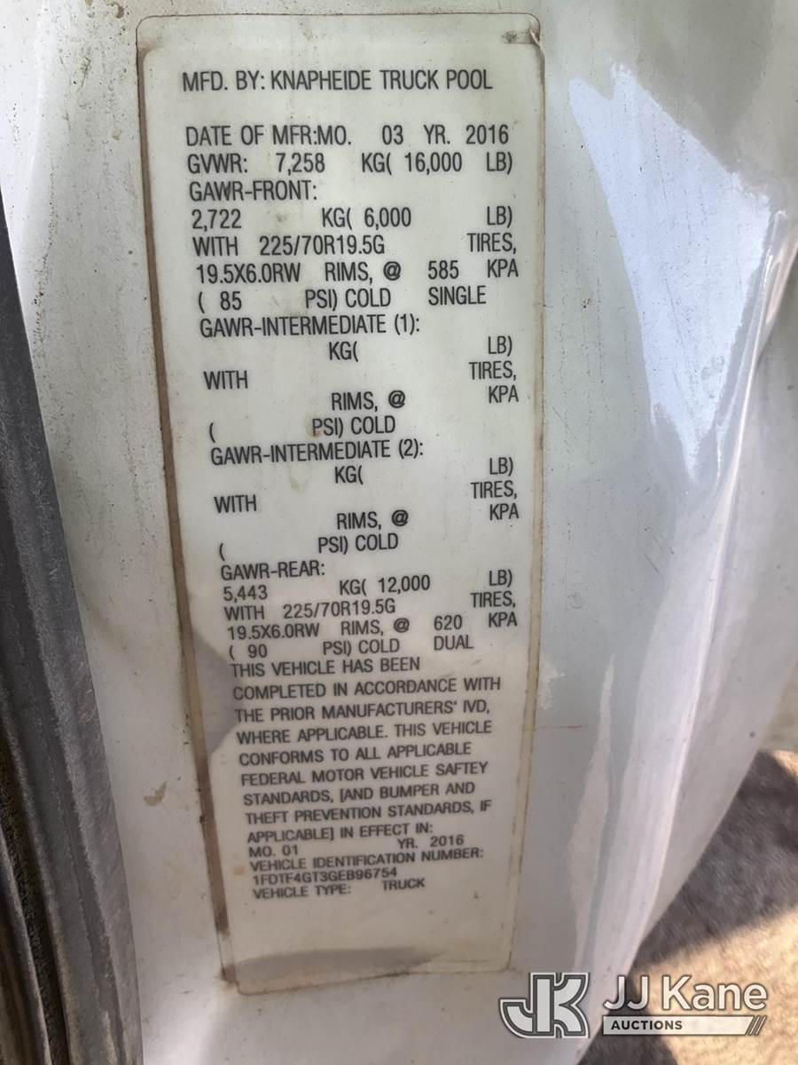2016 Ford F-450 SD Service Truck, 6.7L Diesel Auto, A/C, (80,868 miles) (Cranks, Does Not Start) (Seller States: Fuel System Failure, Fuel Tank In Bed Operates, Paint/Body Damage) (Reads 5,660 hours) This is a Titled Item NOTE: This unit is being sold AS IS/WHERE IS via Timed Auction and is located in South Beloit, IL. Inspection & preview days for this unit are the 2 business days prior to the first day of items closing for this auction, item is located at 14354 Dearborn Ave South Beloit, IL and hours of operations are 8a-4p. For pre-sale questions, please contact Derek Eklund at (608) 904-0618 or (derek.eklund@jjkane.com). (Buyer is responsible for removal. Assistance by consignor or JJ Kane Auctions is not assured.)