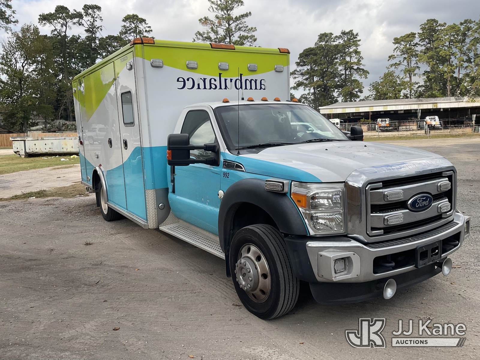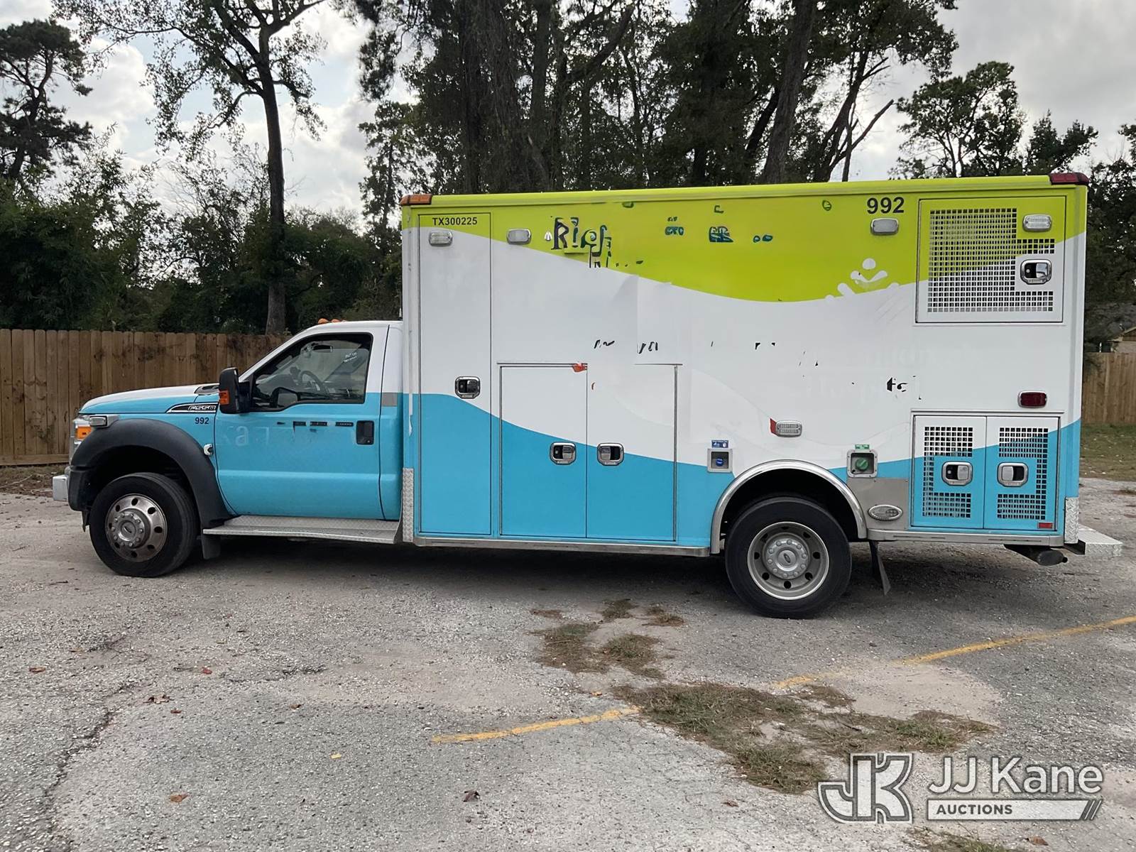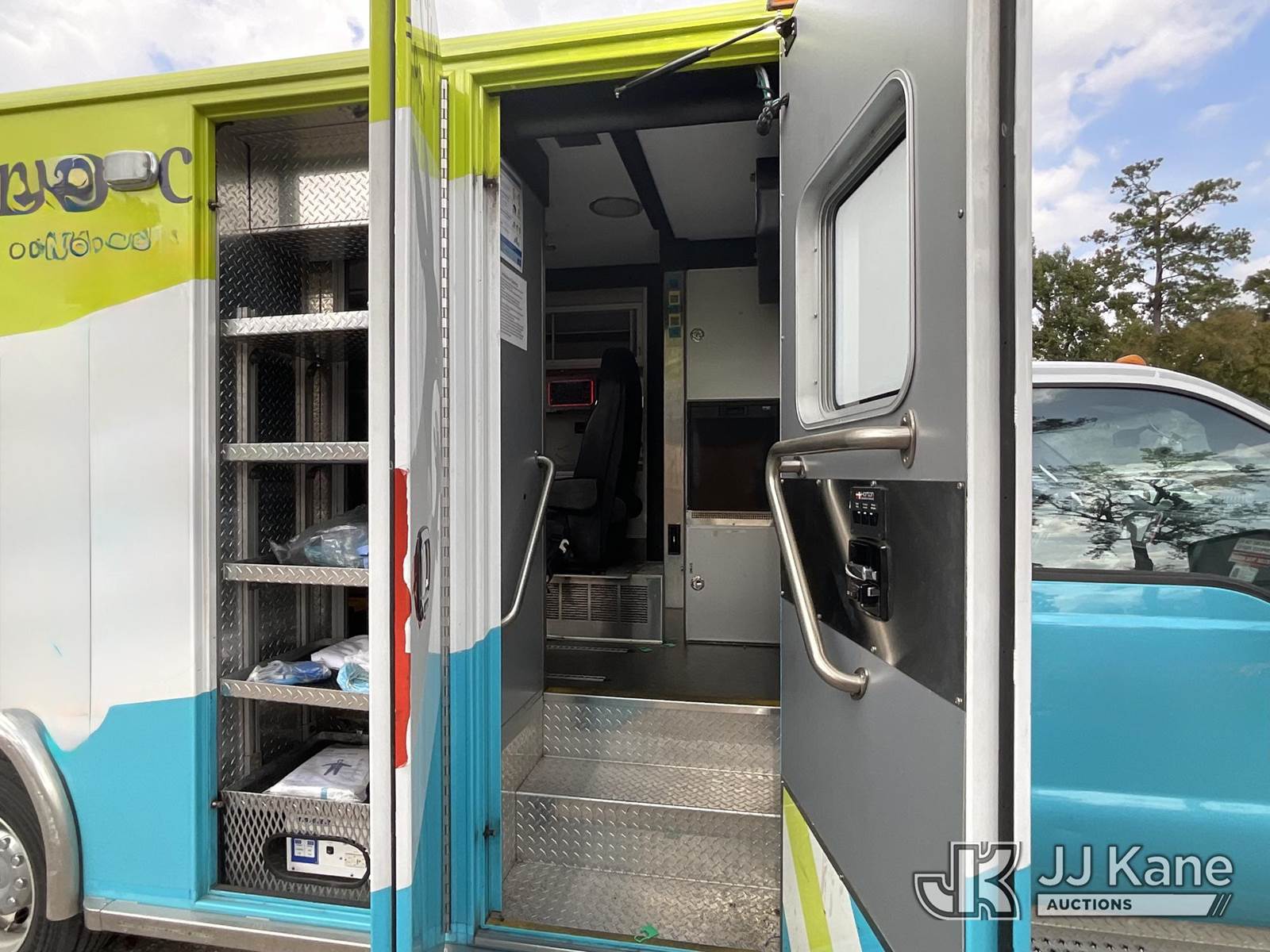 2016 Ford F-550 Ambulance, 6.7L diesel Auto, A/C, with power inverter, on-board generator, three new spare tire and wheels, (230,801 miles) (Runs & Moves) (Jump To Start, Needs New Batteries, Service Light On) This is a Titled Item NOTE: This unit is being sold AS IS/WHERE IS via Timed Auction and is located in Spring, TX. For more information & removal arrangements please contact Charlie de Kanter @ (281) 910-7147. (Buyer is responsible for removal. Assistance by consignor or JJ Kane Auctioneers is not assured.)
