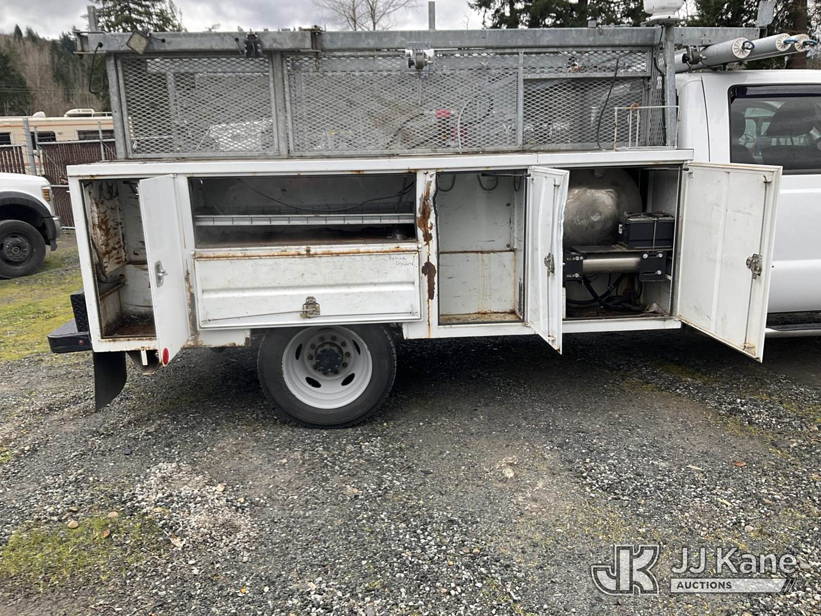 2016 Ford F-550 Crew-Cab Service Truck, 10-cyl gas, 4wd, Auto, A/C, with fuel transfer tank, (126,148 miles) (Runs & Moves) (Low LNG - Recommended To Tow) This is a Titled Item NOTE: This unit is being sold AS IS/WHERE IS via Timed Auction and is located in Eatonville, WA. Inspection & preview days for this unit are by appointment only; please contact us at contact@jjkane.com or 84-Go-JJKane for more details. (Buyer is responsible for removal. Assistance by consignor or JJ Kane Auctions is not assured.)