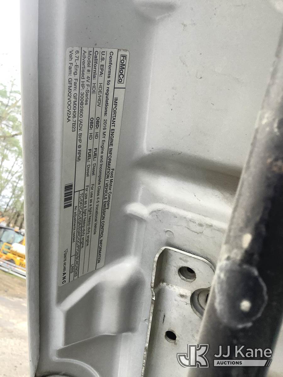 2016 Ford F-550 Regular Cab DRW 2WD 6.7L V8 RWD, Diesel, Auto, A/C, (86,268 miles) (Runs, Moves & Operates, Check Engine Light On) (Removal is by Appointment Only, Buyer MUST make a appointment prior to picking up, Buyer/Transporter Must have PAID IN FULL RELEASE. No onsite assistance available, Please Come prepared.) This is a Titled Item NOTE: This unit is being sold AS IS/WHERE IS via Timed Auction and is located in Harmans, MD. Inspection & preview days for this unit are by appointment only; please contact us at contact@jjkane.com or 84-Go-JJKane for more details. For pre-sale questions, please contact the on-site office @ (443) 557-0025 or Kevin.Waggoner@JJKane.com. (Buyer is responsible for removal. Assistance by consignor or JJ Kane Auctions is not assured.)