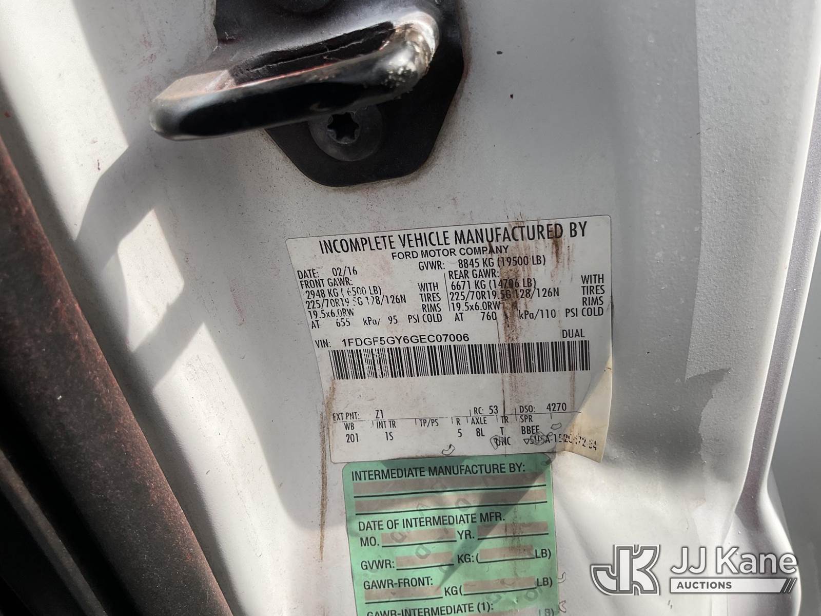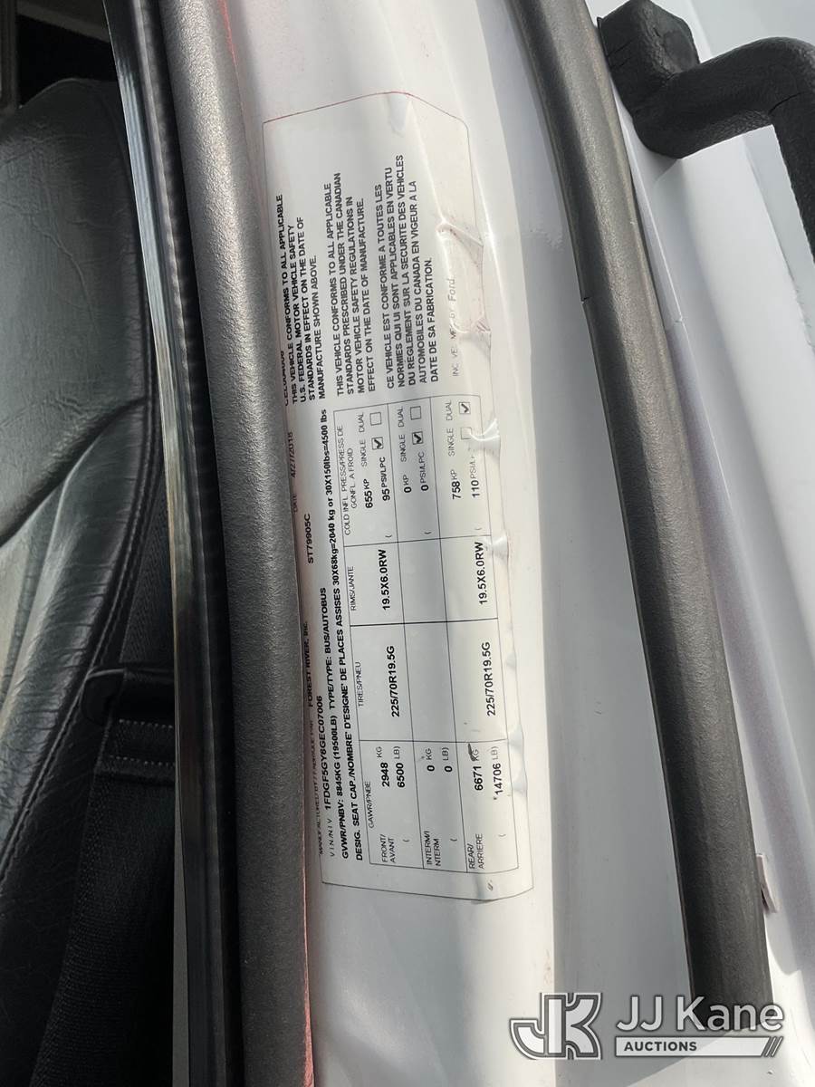 2016 Ford F-550 Regular Cab DRW 2WD Passenger Bus, s/n 1FDGF5GY6GEC07006, 6.8L V10 SOHC 30V RWD, CNG Only, Auto, A/C, with 26 Passenger Seating, (191,058 miles) (Runs & Moves, Low Fuel, CNG Tanks Expire In 2043) (Bidding Restricted to Licensed Vehicle Dealers Only), This is a Titled Item NOTE: This unit is being sold AS IS/WHERE IS via Timed Auction and is located in Jurupa Valley, CA. Inspection & preview days for this unit are the 2 business days prior to the first day of items closing for this auction, item is located at 4510 Muth Way Jurupa Valley, CA 92509 and hours of operations are 8a-4p. For pre-sale questions, please contact please contact Office Staff @ (310) 353-7140. Dealer License Number 45696. (Buyer is responsible for removal. Assistance by consignor or JJ Kane Auctions is not assured.)