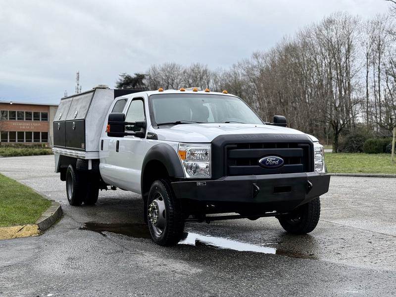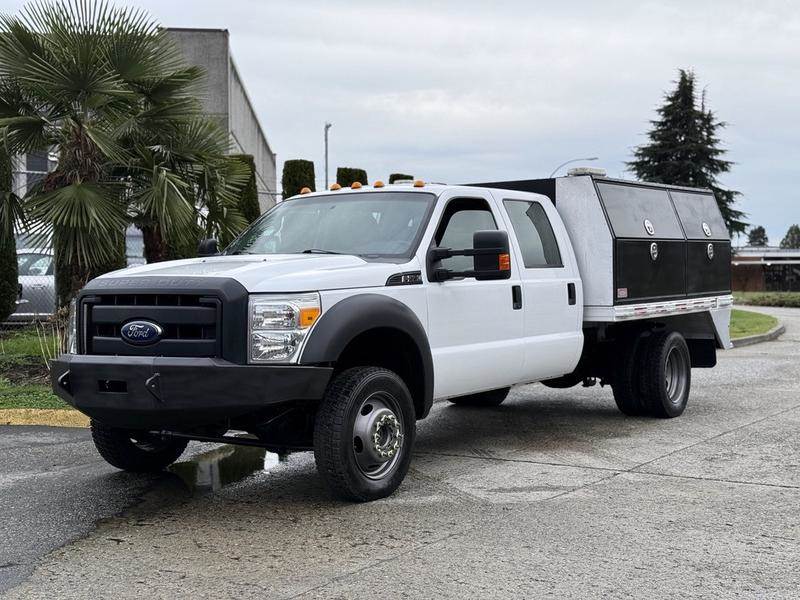 This 2016 Ford F-550 Super Duty crew cab dually 4WD service truck is powered by a 6.8L V10 with an automatic transmission and four-wheel drive, and is equipped with a practical service box featuring multiple storage compartments and an onboard water tank. It includes auxiliary switches, cruise control, air conditioning and heat, AM/FM radio, power windows, power door locks, and power mirrors. Finished in white with a grey cloth interior, this four-door crew cab offers a straightforward and capable setup suitable for service, utility, or fleet applications. $48,820.00 plus $375 processing fee, $49,195.00 total payment obligation before taxes. Listing report, warranty, contract commitment cancellation fee, financing available on approved credit (some limitations and exceptions may apply). All above specifications and information is considered to be accurate but is not guaranteed and no opinion or advice is given as to whether this item should be purchased. We do not allow test drives due to theft, fraud, acts of vandalism and undetectable impaired driving. Instead we provide the following benefits: Complimentary Warranty (with options to extend), Limited Money Back Satisfaction Guarantee on Fully Completed Contracts, Contract Commitment Cancellation, and an Open-Ended Sell-Back Option. Ask seller for details or call to confirm listing availability.