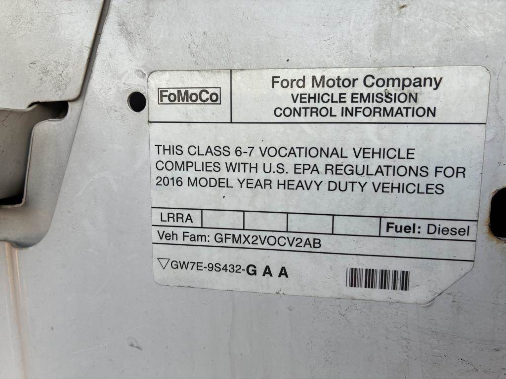 VIN: 1FDNW6DC2GDA01306 6.7L 8Cyl Turbo Diesel, Automatic, AC, Heat, AM/FM, CD, Cruise Control, Power Windows, Power Locks, Rear Back Up Camera, DEF, Certified Clean Idle, 24' Cargo Box with Cab Over Extension, Under Bed Tool Boxes, Curb Side Swing Door, Rear Rain Flap, Cantilever 4,400LB Hydraulic Lift Gate, Air Suspension, Trailer Brake Controller, Tow Package, 11R22.5 Tire Size, 26,000LB GVWR Odometer Reading: 113,504 Disclaimer: Mileage and hours are visually observed and not verified.