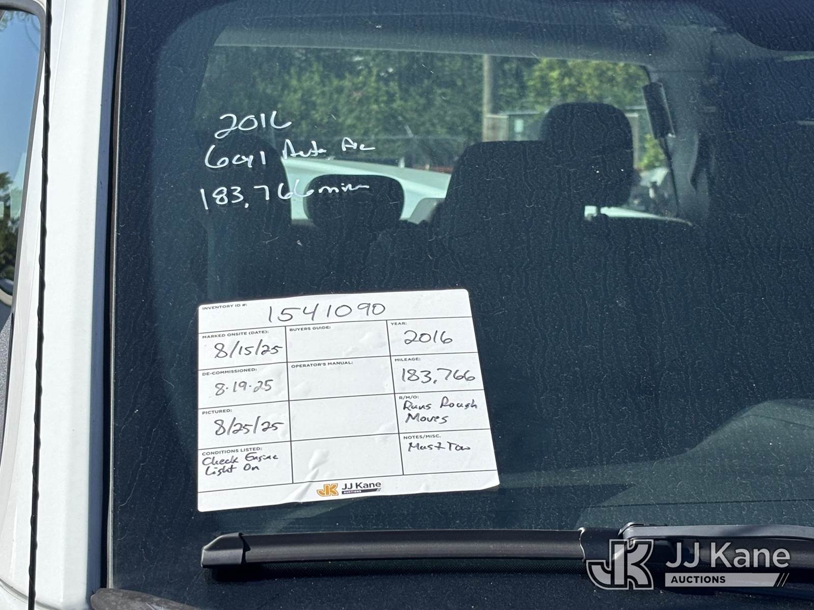 2016 Ford F150 2WD Extended-Cab Pickup Truck, 6-cyl gas, Auto, A/C, (183,766 miles) (Runs Rough & Moves, Check Engine Light On, Won't Stay Running, Must Tow) This is a Titled Item NOTE: This unit is being sold AS IS/WHERE IS via Timed Auction and is located in Plymouth Meeting, PA. Inspection & preview days for this unit are the 2 business days prior to the first day of items closing for this auction, item is located at 1402 Conshohocken Rd Plymouth Meeting, PA 19462 and hours of operations are 8a-4p. For pre-sale questions, please contact Bruce Thomas at bruce.thomas.jr@jjkane.com. REMOVAL: 10 Calendar days after the sale, Monday thru Friday (Excluding Saturday & Sunday. Excluding Holidays, Yard is closed Weekends) All items must be removed by the 10th day or a storage fee of $25 per item /per day will be applied. (Buyer is responsible for removal. Assistance by consignor or JJ Kane Auctioneers is not assured.)