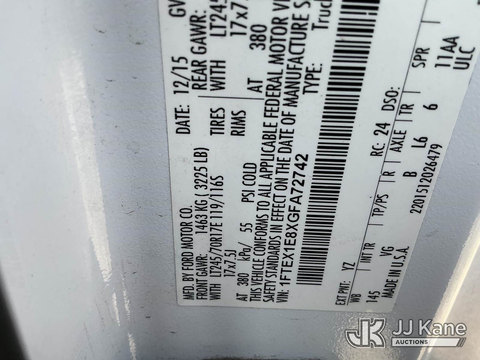 2016 Ford F150 4x4 Extended-Cab Pickup Truck, 6-cyl gas, Auto, A/C, (155,251 miles) (Runs & Moves) This is a Titled Item NOTE: This unit is being sold AS IS/WHERE IS via Timed Auction and is located in Thonotosassa, FL. Inspection & preview days for this unit are the 2 business days prior to the first day of items closing for this auction, item is located at 11720 N US 301 Thonotosassa, Fl 33592 and hours of operations are 8a-4p. For pre-sale questions, please contact Office Staff @ (813) 986-2485. (Buyer is responsible for removal. Assistance by consignor or JJ Kane Auctioneers is not assured.)