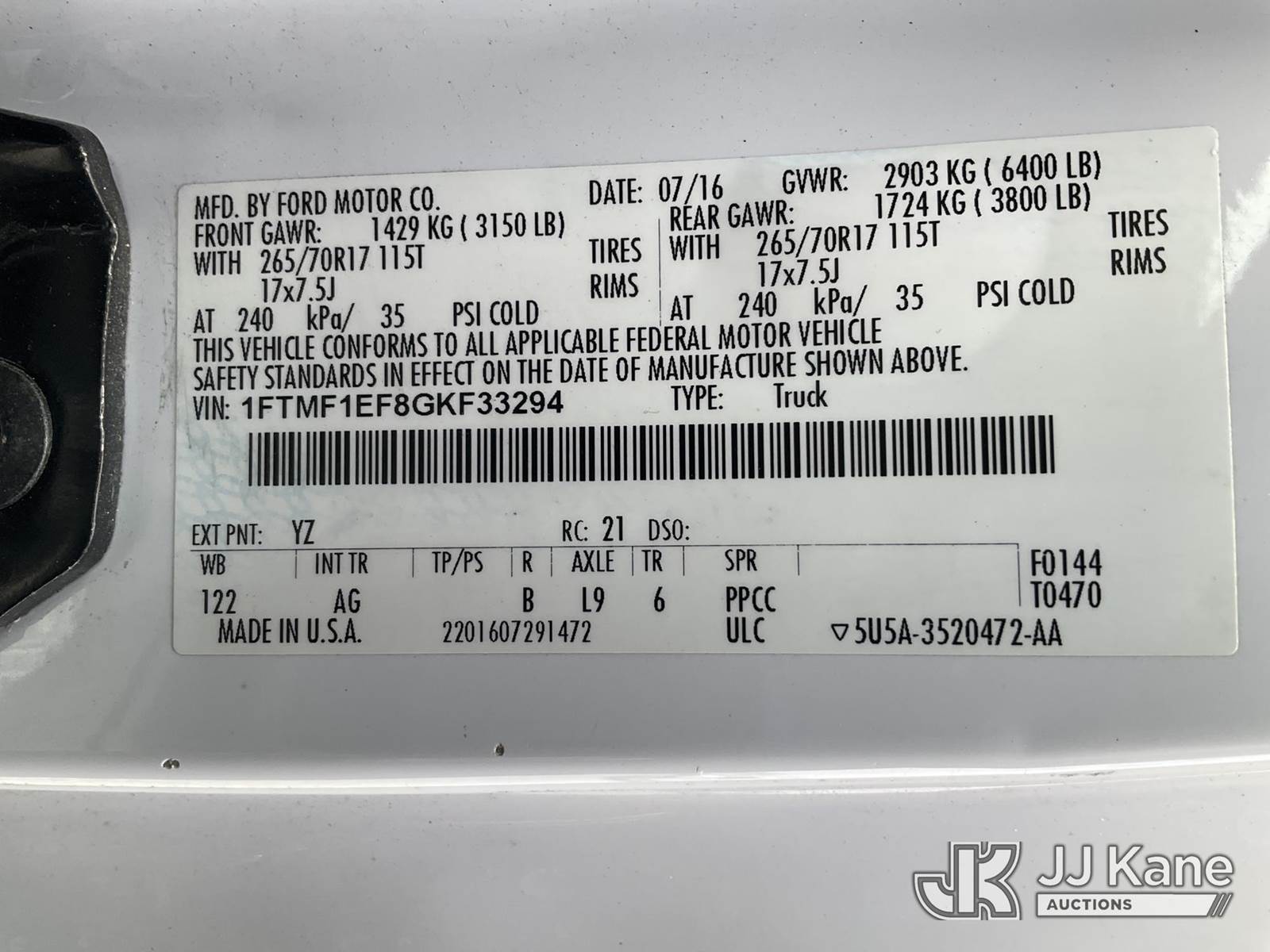 2016 Ford F150 4x4 Pickup Truck, 5.0L V8 OHV 16V gas, 6-Speed Automatic, A/C, with bed cover, (58,043 miles) (Duke Unit) (Runs & Moves) (Paint Damage) This is a Titled Item NOTE: This unit is being sold AS IS/WHERE IS via Timed Auction and is located in Verona, KY. Inspection & preview days for this unit are the 2 business days prior to the first day of items closing for this auction, item is located at 2841 Verona-Mudlick Rd Ste B Verona, KY 41092 and hours of operations are 8a-4p. For pre-sale questions, please contact Office Staff @ (502) 612-5080. Auctioneer Michael Whitebread / License # 256617. (Buyer is responsible for removal. Assistance by consignor or JJ Kane Auctions is not assured.)