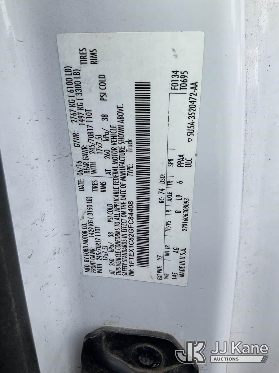 2016 Ford F150 Extended-Cab Pickup Truck, 3.5L V6 DOHC 24V gas, RWD, 6-Speed Automatic, A/C, (160,676 miles) (Runs & Moves) (Check Engine Light On, Paint Damage) This is a Titled Item NOTE: This unit is being sold AS IS/WHERE IS via Timed Auction and is located in Tacoma, WA. Inspection & preview days for this unit are by appointment only; please contact us at contact@jjkane.com or 84-Go-JJKane for more details. (Buyer is responsible for removal. Assistance by consignor or JJ Kane Auctions is not assured.)