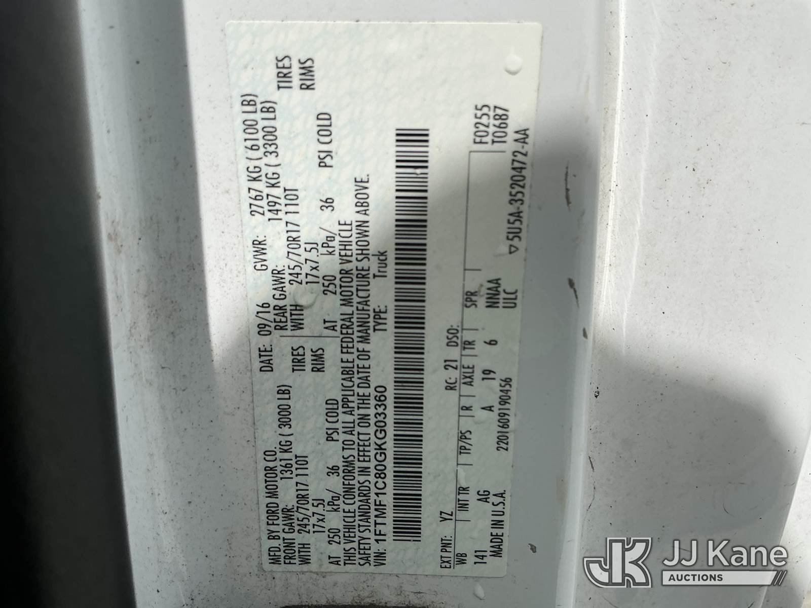 2016 Ford F150 Pickup Truck, 6-cyl gas, Auto, A/C, (165,293 miles) (Runs & Moves) (Check Engine Light On) This is a Titled Item NOTE: This unit is being sold AS IS/WHERE IS via Timed Auction and is located in China Grove, NC. Inspection & preview days for this unit are the 2 business days prior to the first day of items closing for this auction, item is located at 820 E NC Hwy 152 China Grove, NC 28023 and hours of operations are 8a-4p. For pre-sale questions, please contact Office Staff @ (704) 674-1113. (Buyer is responsible for removal. Assistance by consignor or JJ Kane Auctions is not assured.)