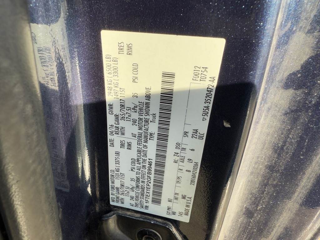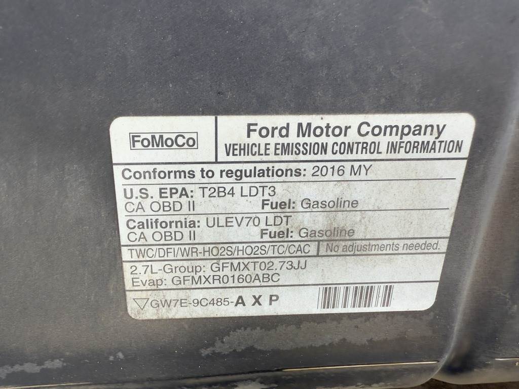 Location: Washougal WA ***End-User Consignment*** VIN: 1FTEX1EP2GFB99461 Engine: Ecoboost 2.7L 6cyl Gas Transmission: Automatic 6' 7" Bed, tow package, rearview camera, power windows, power mirrors, power locks, cruise control, 6,306 engine hours, 2,167 engine idle hours, A/C, AM/FM/Bluetooth, spring suspension, LT265/70R17 tires. Miles: 156,252