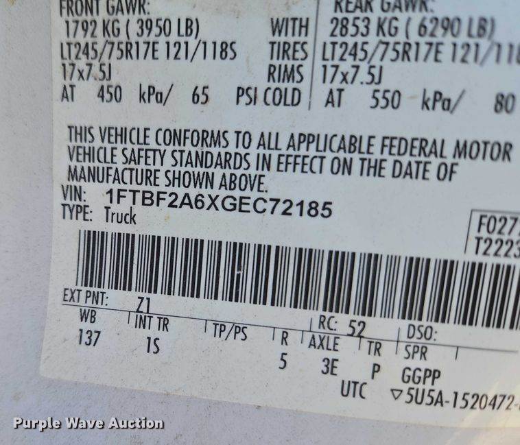 VIN: 1FTBF2A6XGEC72185