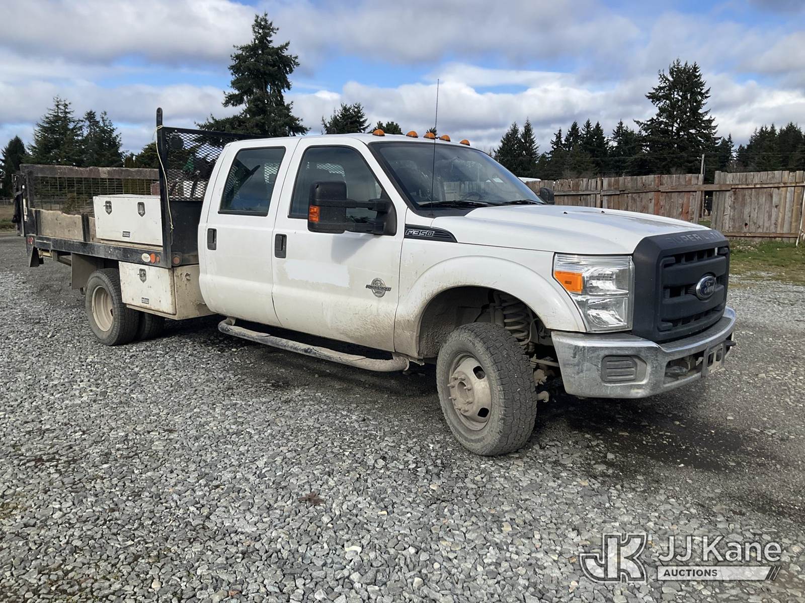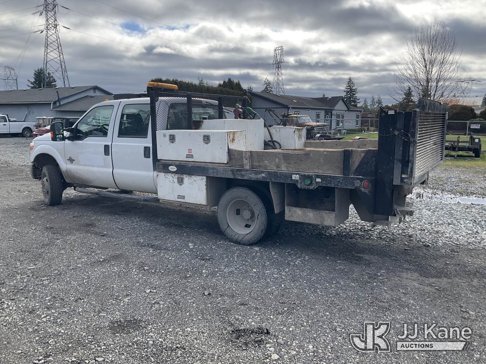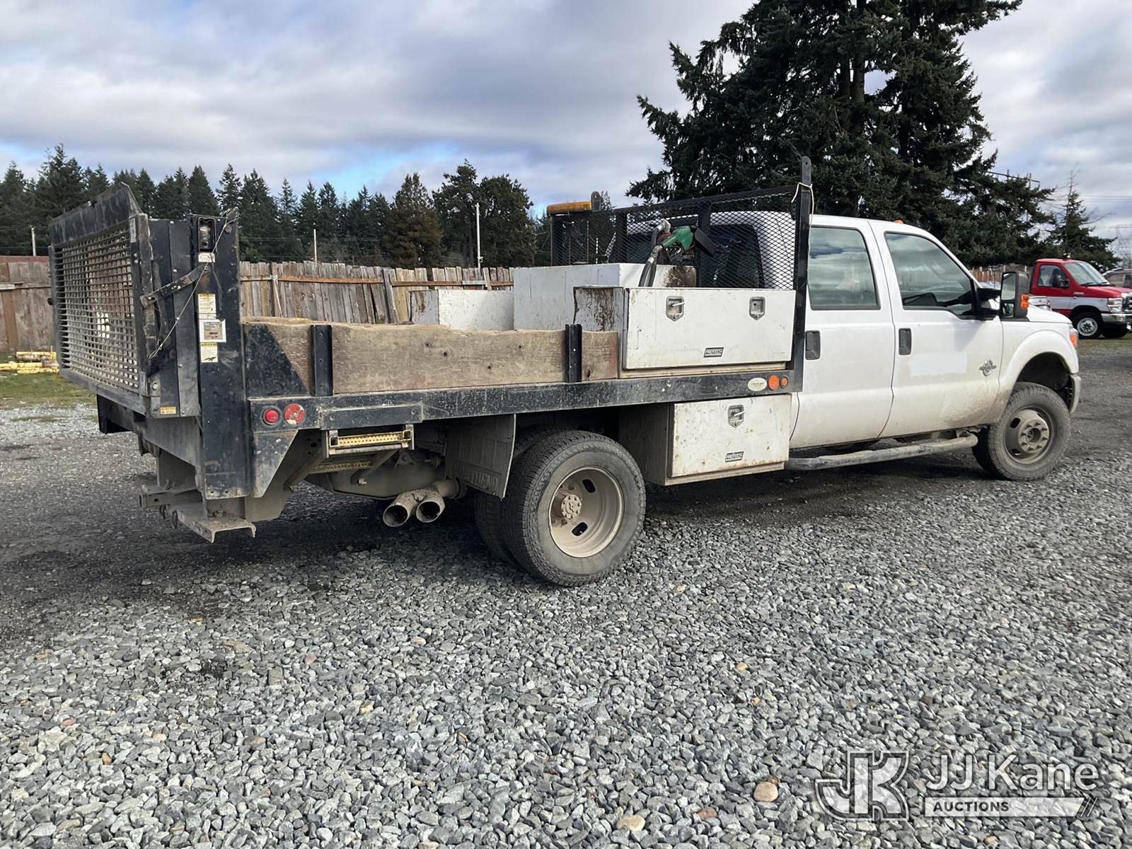 2016 Ford F350 4x4 Crew-Cab Flatbed Truck, 6.7L V8 OHV 16V diesel, 6-Speed Automatic, A/C, with lift gate, aux fuel tank w/ pump, (66,094 miles) (Runs & Moves) (Check Engine Light On) This is a Titled Item NOTE: This unit is being sold AS IS/WHERE IS via Timed Auction and is located in Tacoma, WA. Inspection & preview days for this unit are by appointment only; please contact us at contact@jjkane.com or 84-Go-JJKane for more details. (Buyer is responsible for removal. Assistance by consignor or JJ Kane Auctions is not assured.)