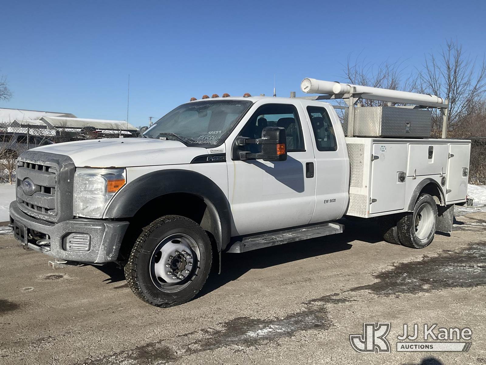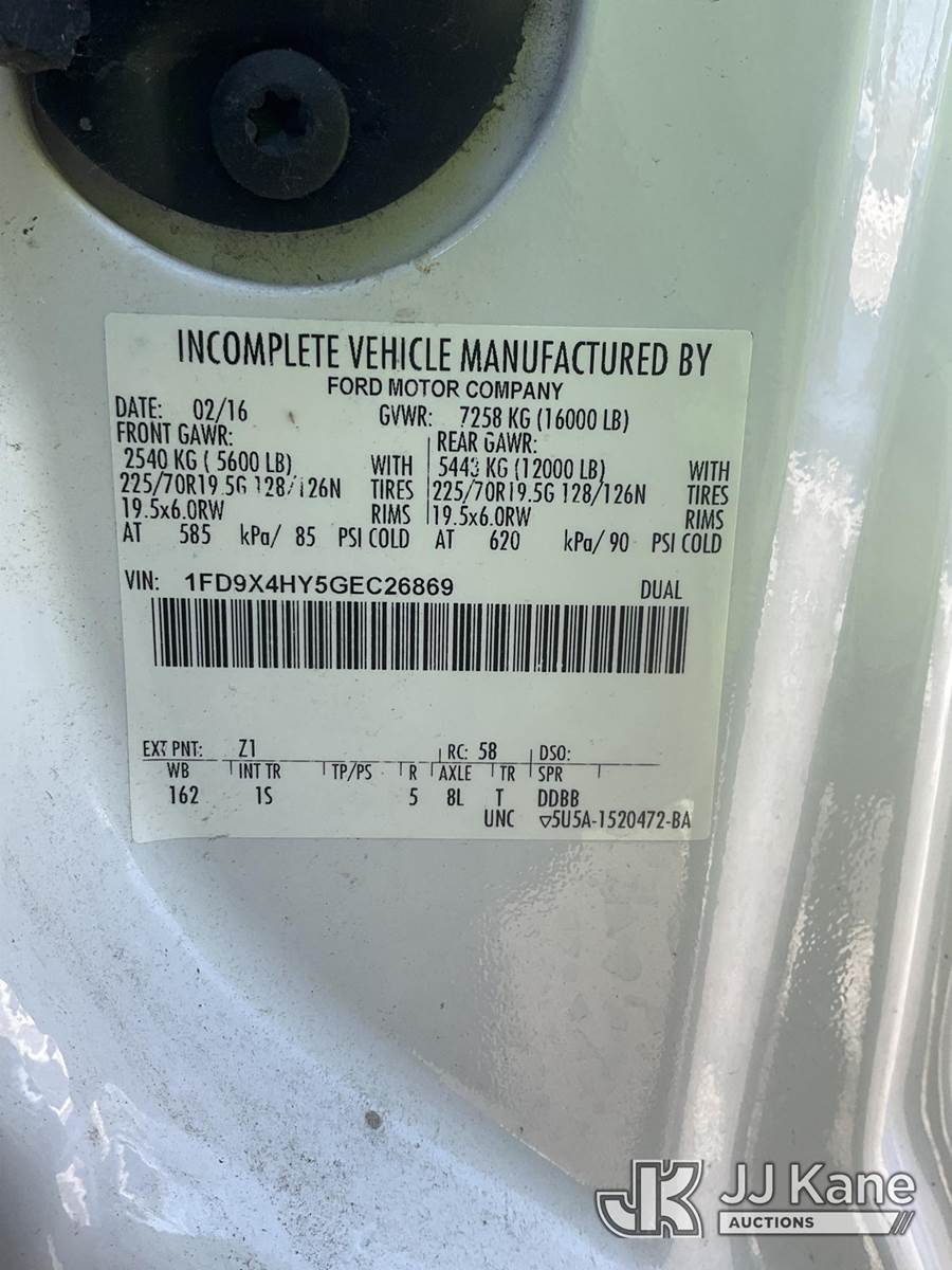 2016 Ford F450 4x4 Extended-Cab Service Truck, 6.8L V10 SOHC 30V Gas, Auto, A/C, (106,455 miles) (Runs & Moves) (Paint/Rust Damage) (Reads 3,722 hours) This is a Titled Item NOTE: This unit is being sold AS IS/WHERE IS via Timed Auction and is located in South Beloit, IL. Inspection & preview days for this unit are the 2 business days prior to the first day of items closing for this auction, item is located at 14354 Dearborn Ave South Beloit, IL and hours of operations are 8a-4p. For pre-sale questions, please contact Derek Eklund at (608) 904-0618 or (derek.eklund@jjkane.com). (Buyer is responsible for removal. Assistance by consignor or JJ Kane Auctions is not assured.)