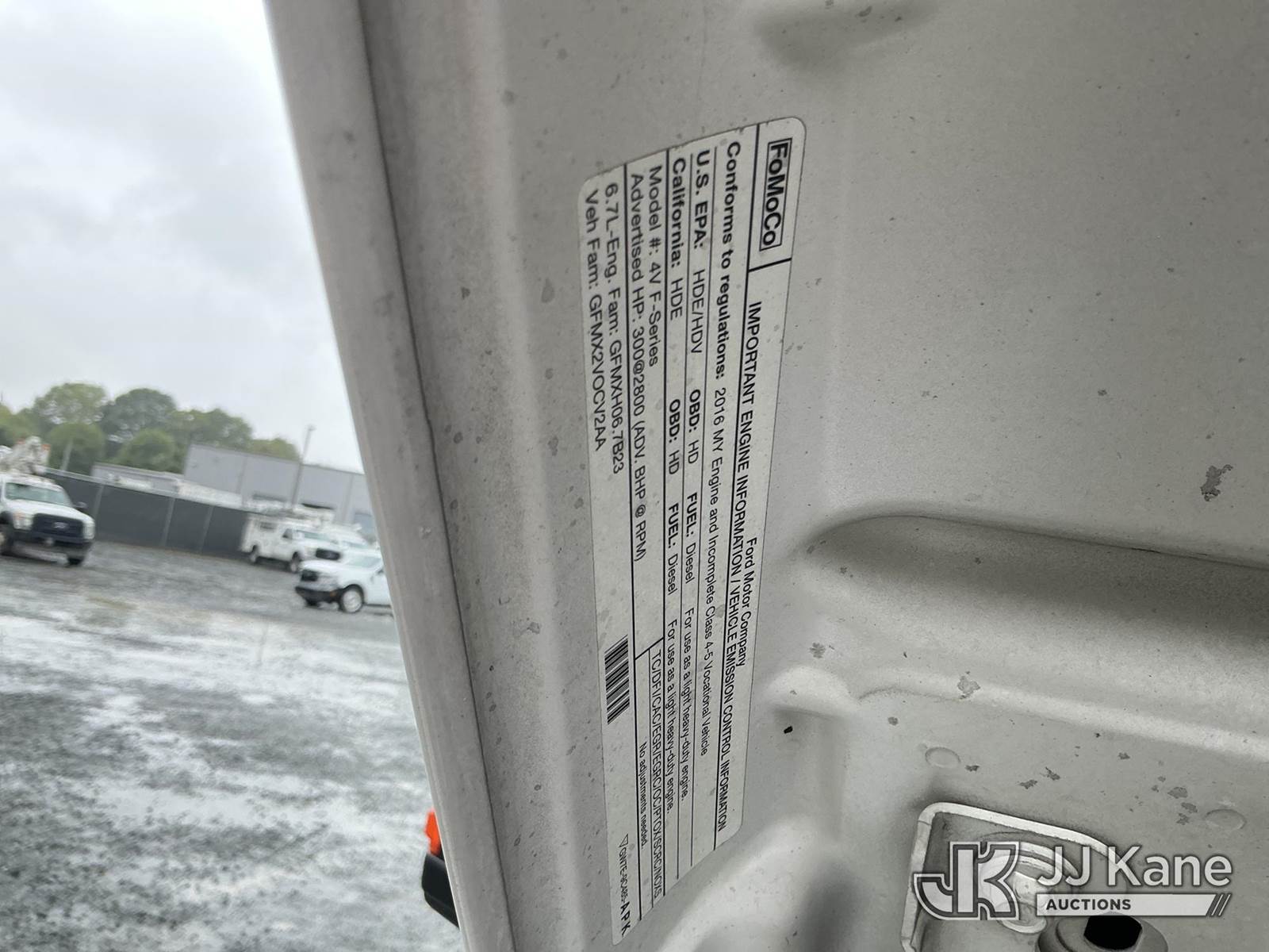 2016 Ford F550 4X4 Service Truck, 6.7L diesel, Auto, A/C, with front winch & liftgate, (156,700 miles) (Duke Unit) (Runs, Moves & Liftgate Operates) (Jump To Start, Check Engine Light On) This is a Titled Item NOTE: This unit is being sold AS IS/WHERE IS via Timed Auction and is located in China Grove, NC. Inspection & preview days for this unit are the 2 business days prior to the first day of items closing for this auction, item is located at 820 E NC Hwy 152 China Grove, NC 28023 and hours of operations are 8a-4p. For pre-sale questions, please contact Office Staff @ (704) 674-1113. (Buyer is responsible for removal. Assistance by consignor or JJ Kane Auctioneers is not assured.)