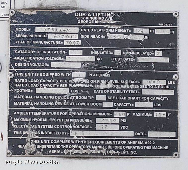 2007 DUR-A-LIFT DTAXS44
