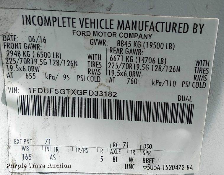 VIN: 1FDUF5GTXGED33182