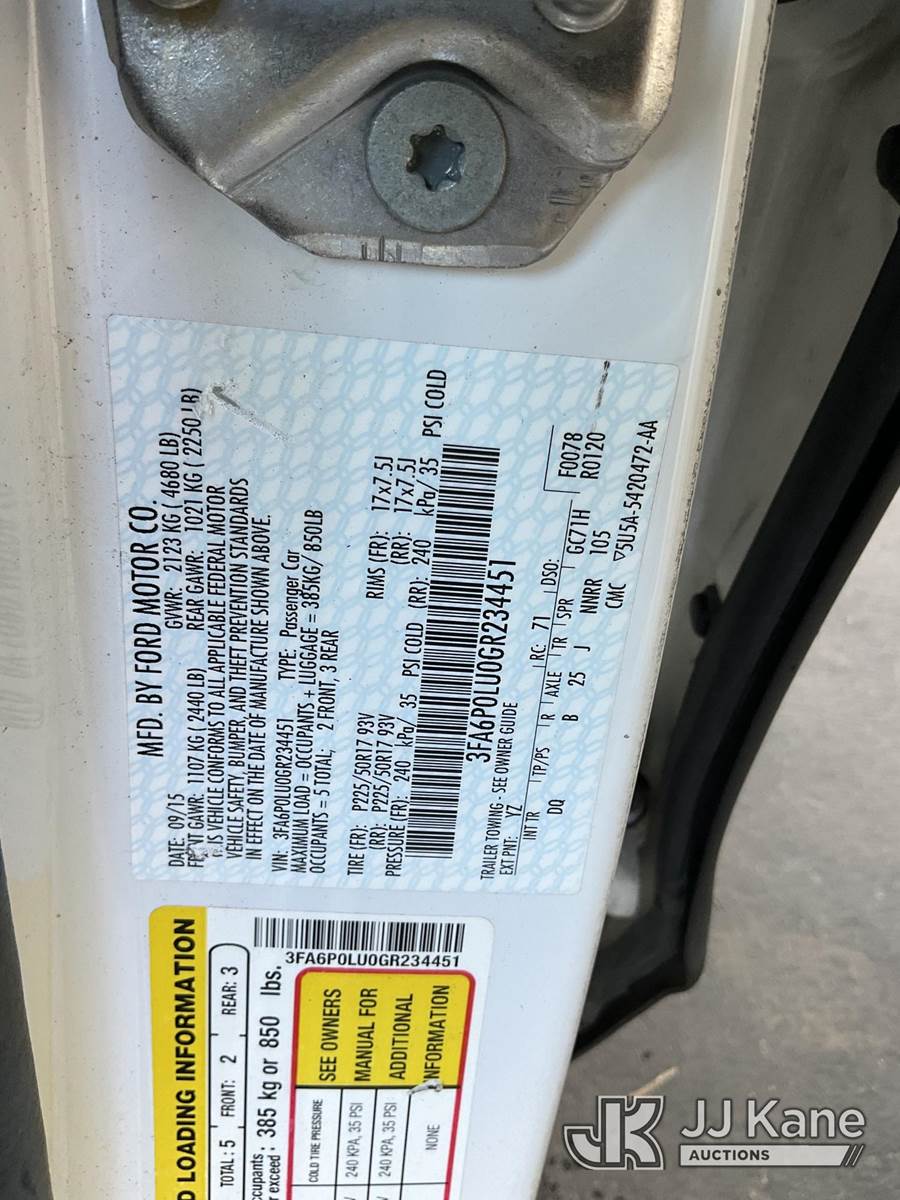 2016 Ford Fusion Hybrid SE 4-Door Sedan, 2.0L L4 DOHC 16V FWD, HYBRID, CVT, A/C, (136,778 miles) (Runs & Moves, Traction Control Light On, Engine Rattling) (Bidding Restricted to Licensed Vehicle Dealers Only), This is a Titled Item NOTE: This unit is being sold AS IS/WHERE IS via Timed Auction and is located in Jurupa Valley, CA. Inspection & preview days for this unit are the 2 business days prior to the first day of items closing for this auction, item is located at 4510 Muth Way Jurupa Valley, CA 92509 and hours of operations are 8a-4p. For pre-sale questions, please contact please contact Office Staff @ (310) 353-7140. Dealer License Number 45696. (Buyer is responsible for removal. Assistance by consignor or JJ Kane Auctions is not assured.)