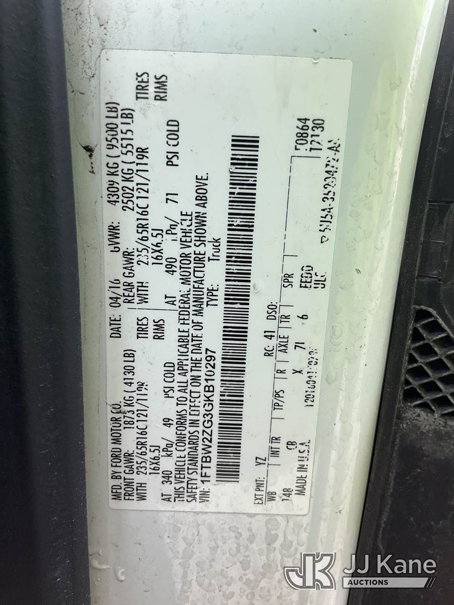 2016 Ford Transit 350 Low Roof 148-in. WB Sprinter Cargo Van, 6-cyl gas, RWD, 6-Speed Automatic, A/C, (157,418 miles) (Runs & Moves) (Check Engine Light On, Rough Idle, Paint Damage) (Reads 5,500 hours) This is a Titled Item NOTE: This unit is being sold AS IS/WHERE IS via Timed Auction and is located in South Beloit, IL. Inspection & preview days for this unit are the 2 business days prior to the first day of items closing for this auction, item is located at 14354 Dearborn Ave South Beloit, IL and hours of operations are 8a-4p. For pre-sale questions, please contact Derek Eklund at (608) 904-0618 or (derek.eklund@jjkane.com). (Buyer is responsible for removal. Assistance by consignor or JJ Kane Auctions is not assured.)