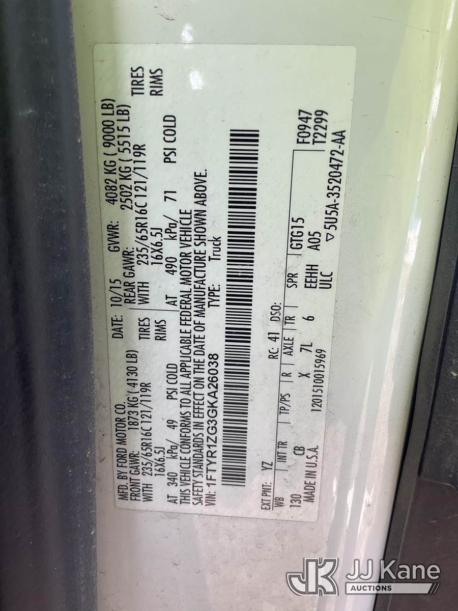2016 Ford Transit Sprinter Cargo Van, 6-cyl gas, 6-Speed Automatic, A/C, (87,297 miles) (Runs & Moves) (Paint/Rust Damage, Engine Noise) (Reads 3,140 hours) This is a Titled Item NOTE: This unit is being sold AS IS/WHERE IS via Timed Auction and is located in South Beloit, IL. Inspection & preview days for this unit are the 2 business days prior to the first day of items closing for this auction, item is located at 14354 Dearborn Ave South Beloit, IL and hours of operations are 8a-4p. For pre-sale questions, please contact Derek Eklund at (608) 904-0618 or (derek.eklund@jjkane.com). (Buyer is responsible for removal. Assistance by consignor or JJ Kane Auctions is not assured.)