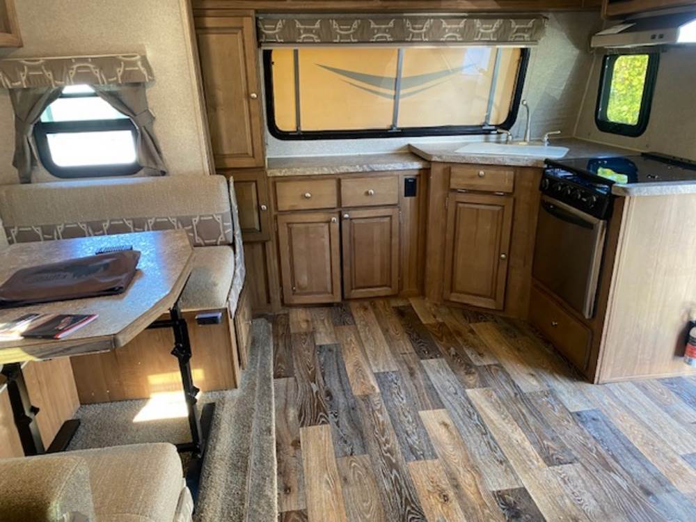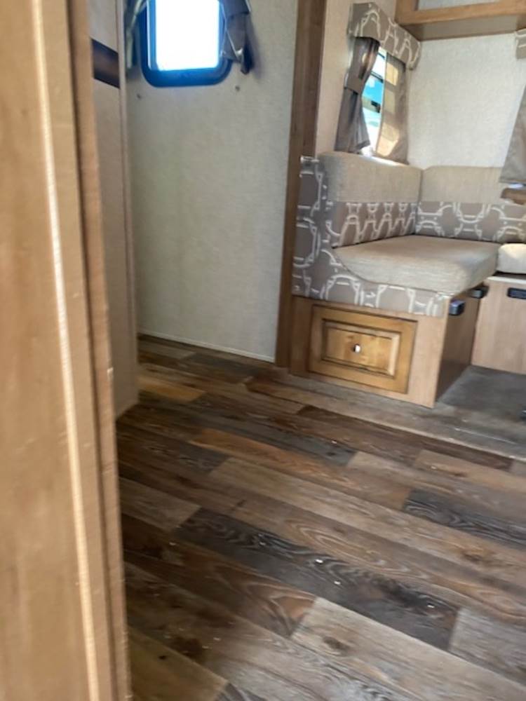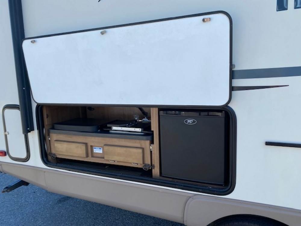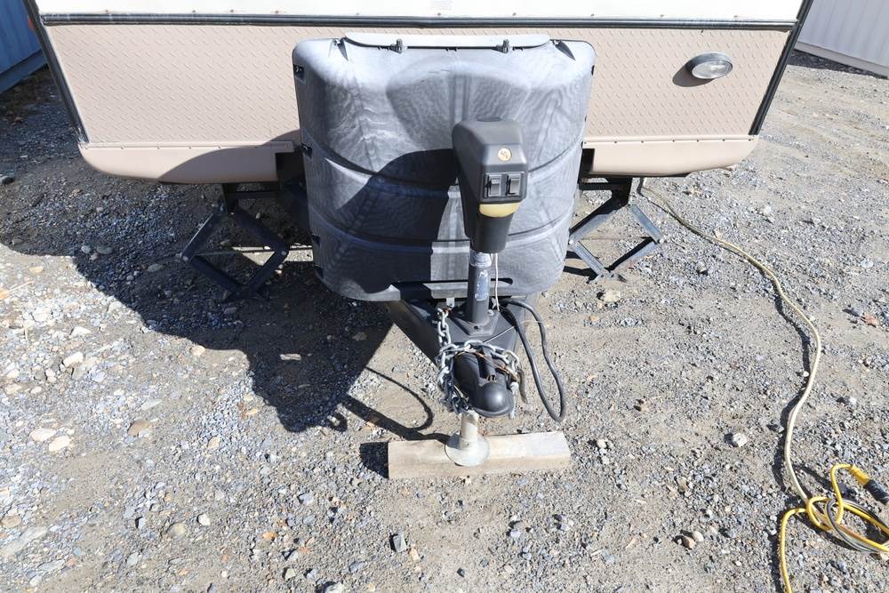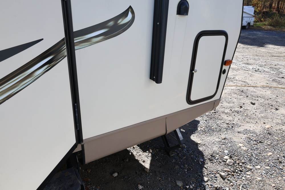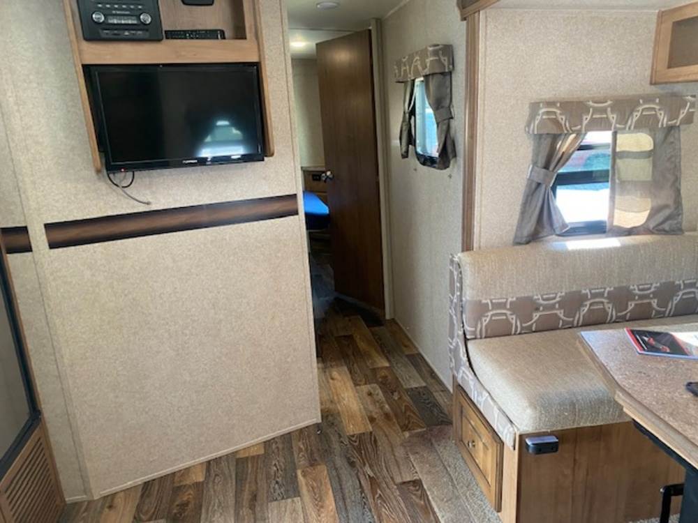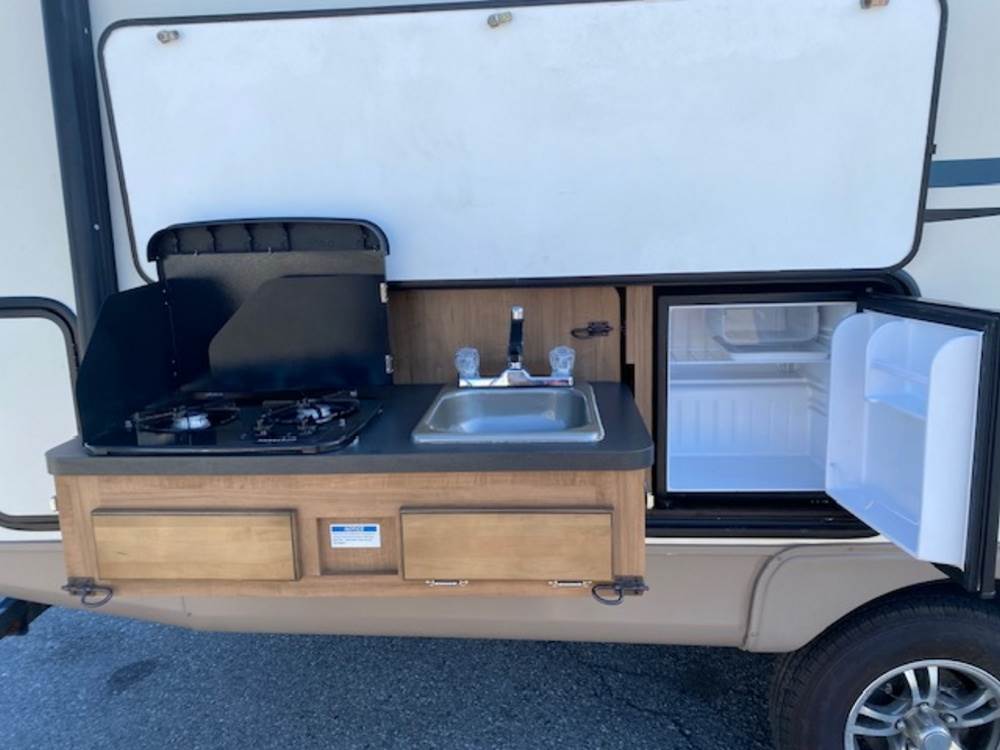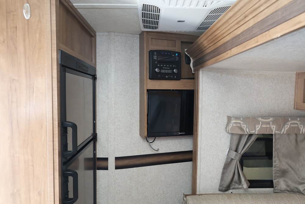 2016 Forest River Micro Lite travel trailer, model 25FKS, VIN: 4X4TFLA27GD408473. With a dry weight of 4,748 lbs and a cargo carrying capacity of 1,453 lbs. It has a gross vehicle weight rating (GVWR) of 6,260 lbs, and rides on ST205/75R14C tires with a specified cold tire pressure of 50 PSI. The trailer includes dual axles rated at 3,000 lbs each, a front kitchen layout, and features a Domestic refrigerator, propane/electric water heater, and a combination stove and oven. It is equipped with an electric tongue jack, rooftop air conditioning, slide-out section, power awning, and ladder access at the rear. Unknown electrical issue, power slide does not function, needs to be manually opened (tool not included). NO KEY for the door. Title available Title will transfer via dealer paperwork in Highland NY.